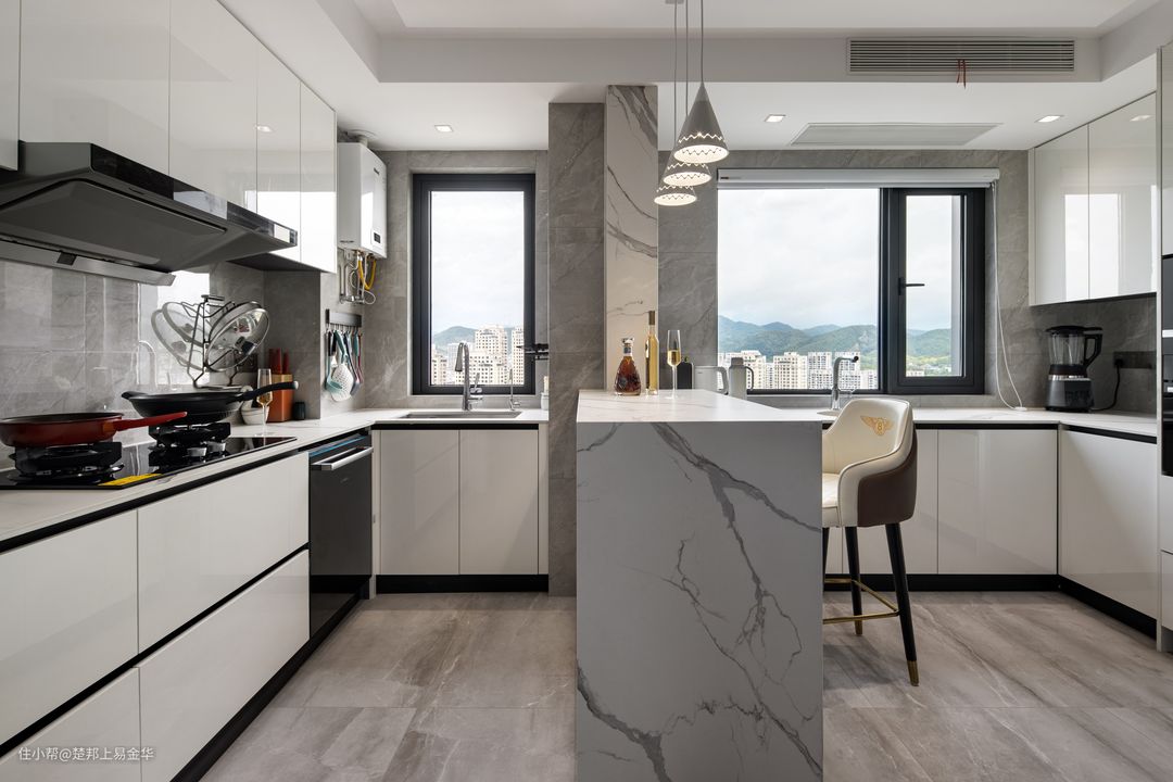 厨房颜色比较明亮,两个窗户也不缺乏采光。