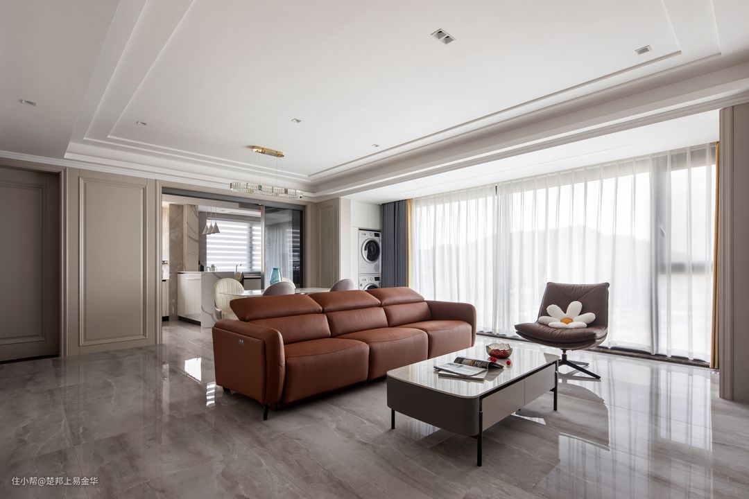 焦糖色的皮质沙发,不仅给整个客厅带来暖色,更是温馨舒适。