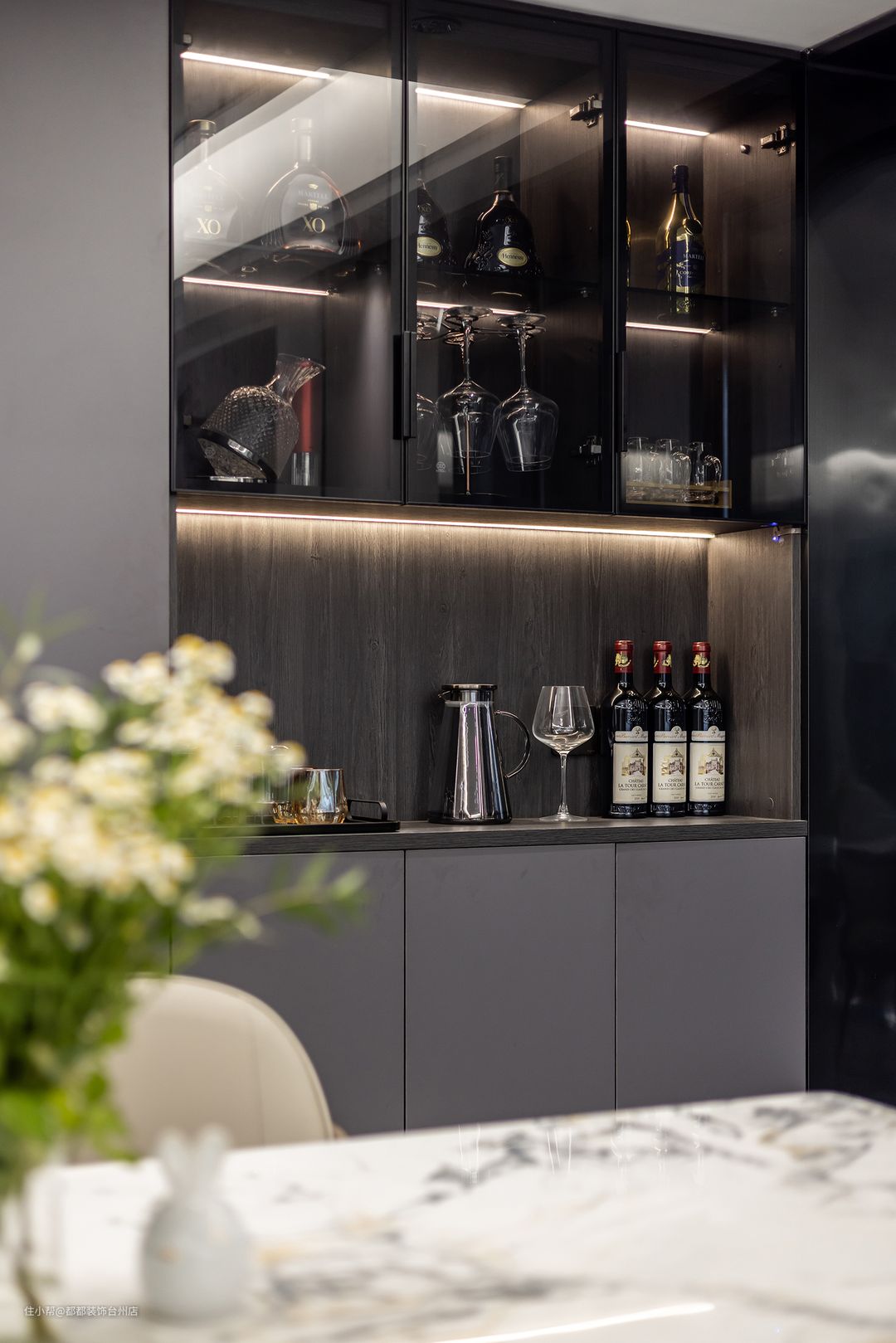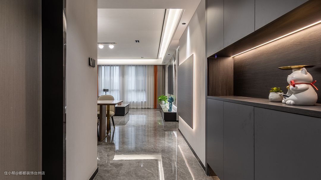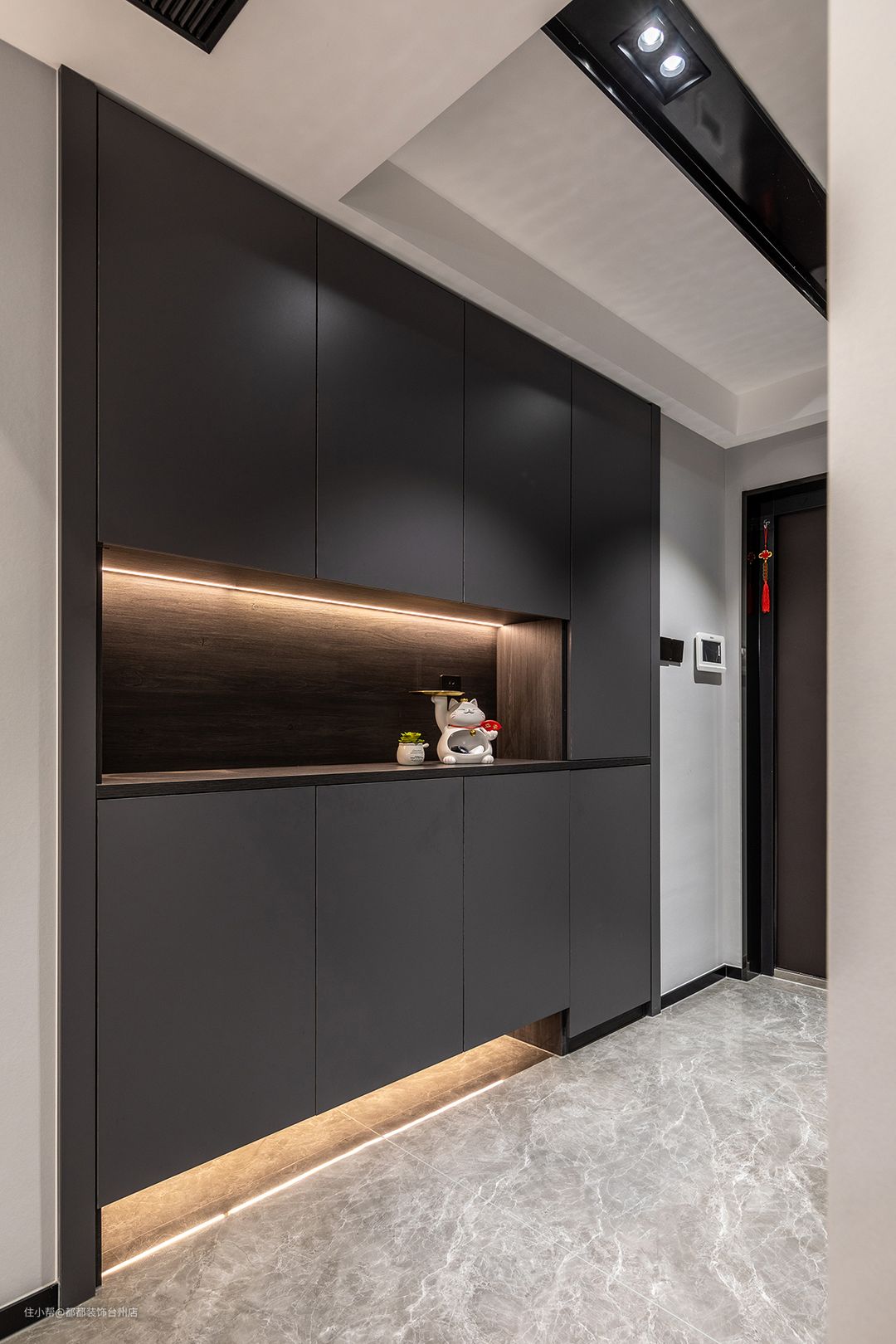 招财猫摆件可爱精致,搭配柜体灯让归家更有仪式感,灯带也是放大空间的神器,营造出更多趣味的视觉角度。