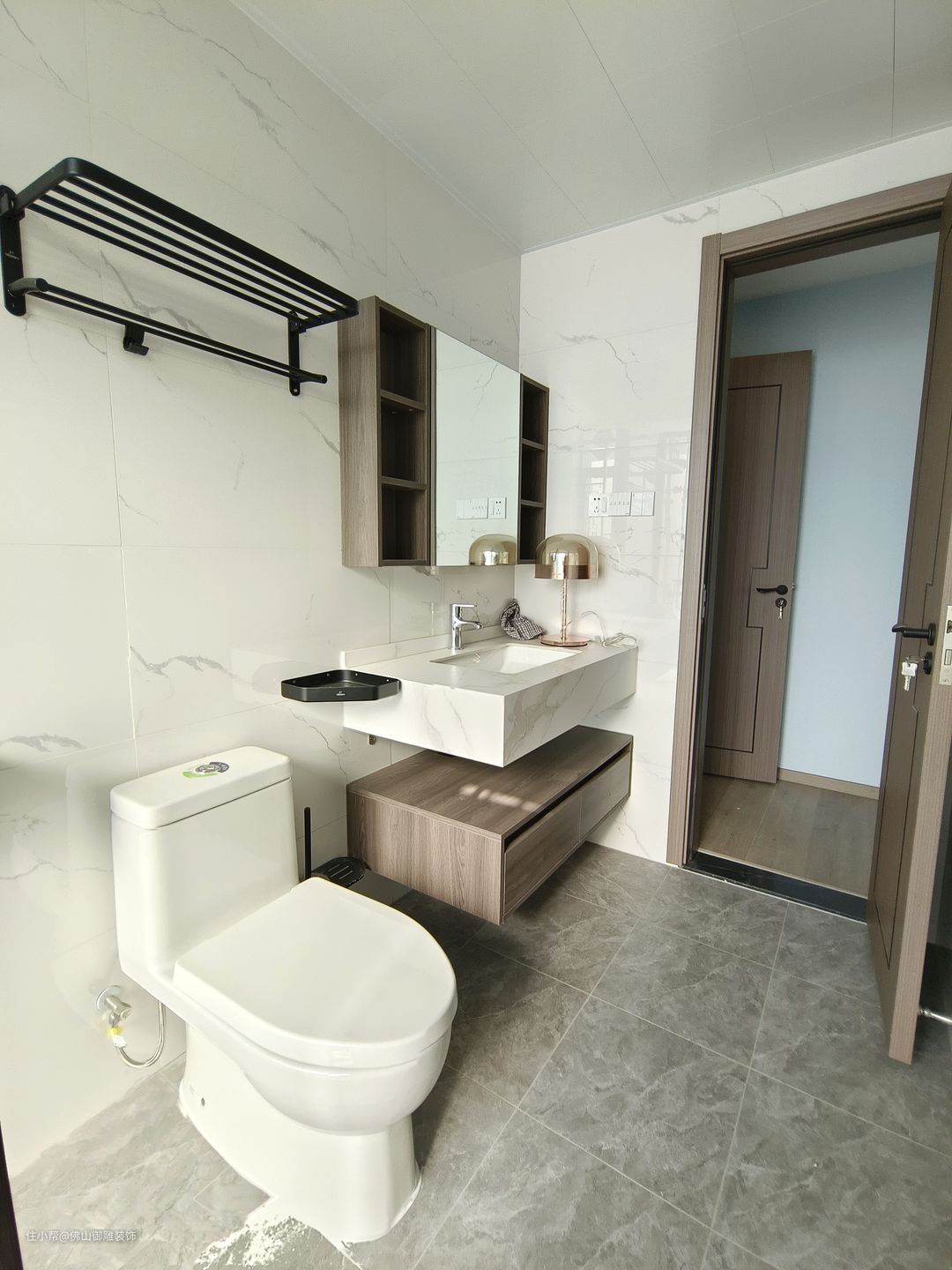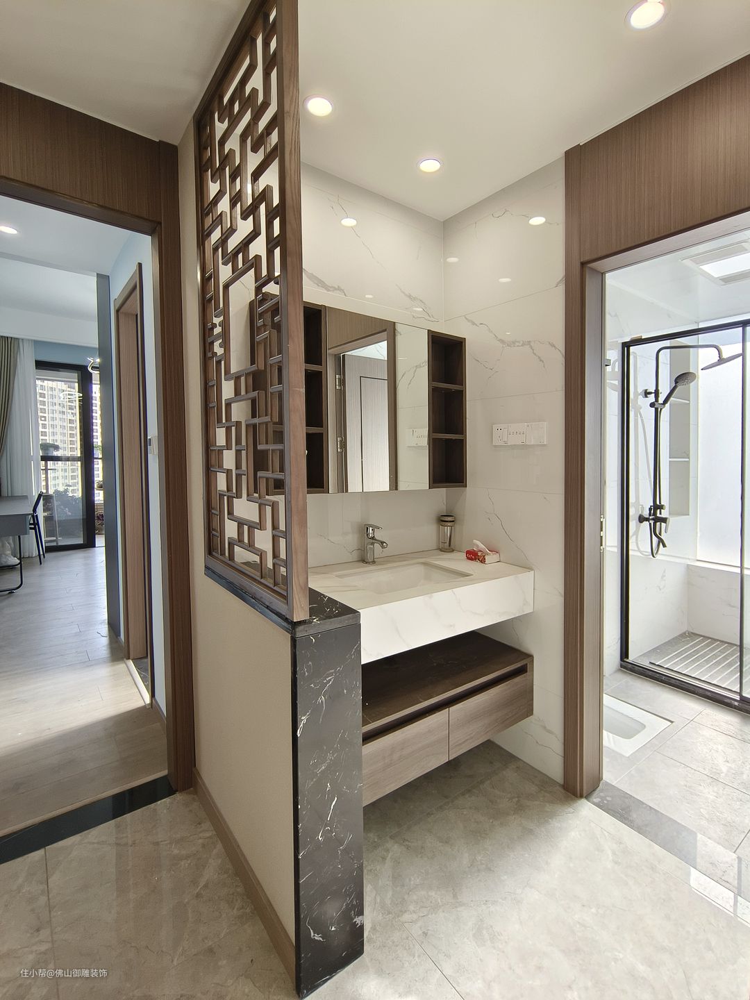 在保证干湿分离的同时,最大化利用空间增加了双台盆设计,展现了设计师对营造高品质生活的追求
