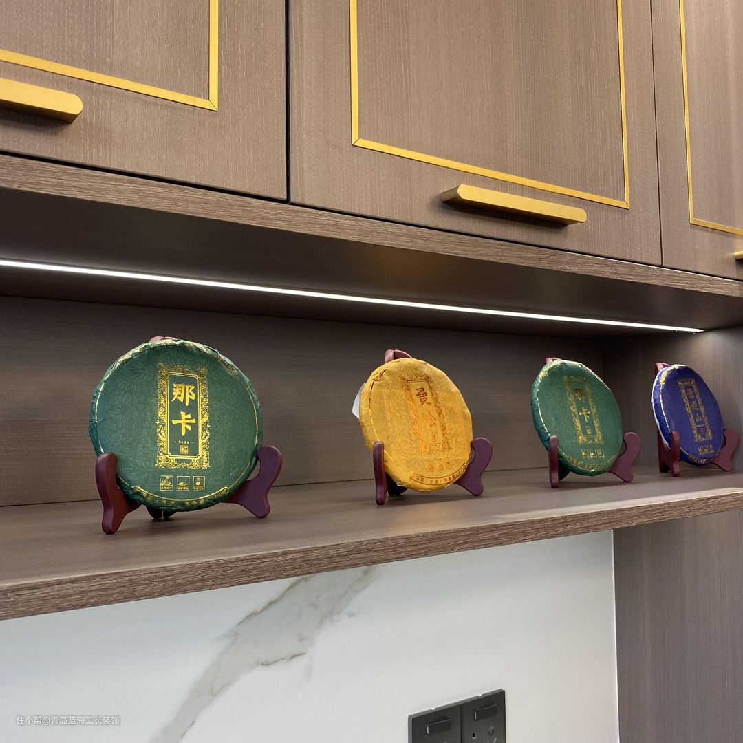 厨房整体是一个U形设计,一进入就会有一个洗菜区,紧挨着是切菜区,并且在切菜区的上方添加了定制柜,柜体下方加了一个感应灯带,方便照明,厨房门用的是隐形地轨,做了三扇拉门,在保证美观的基础上,又能维持它的稳定性。