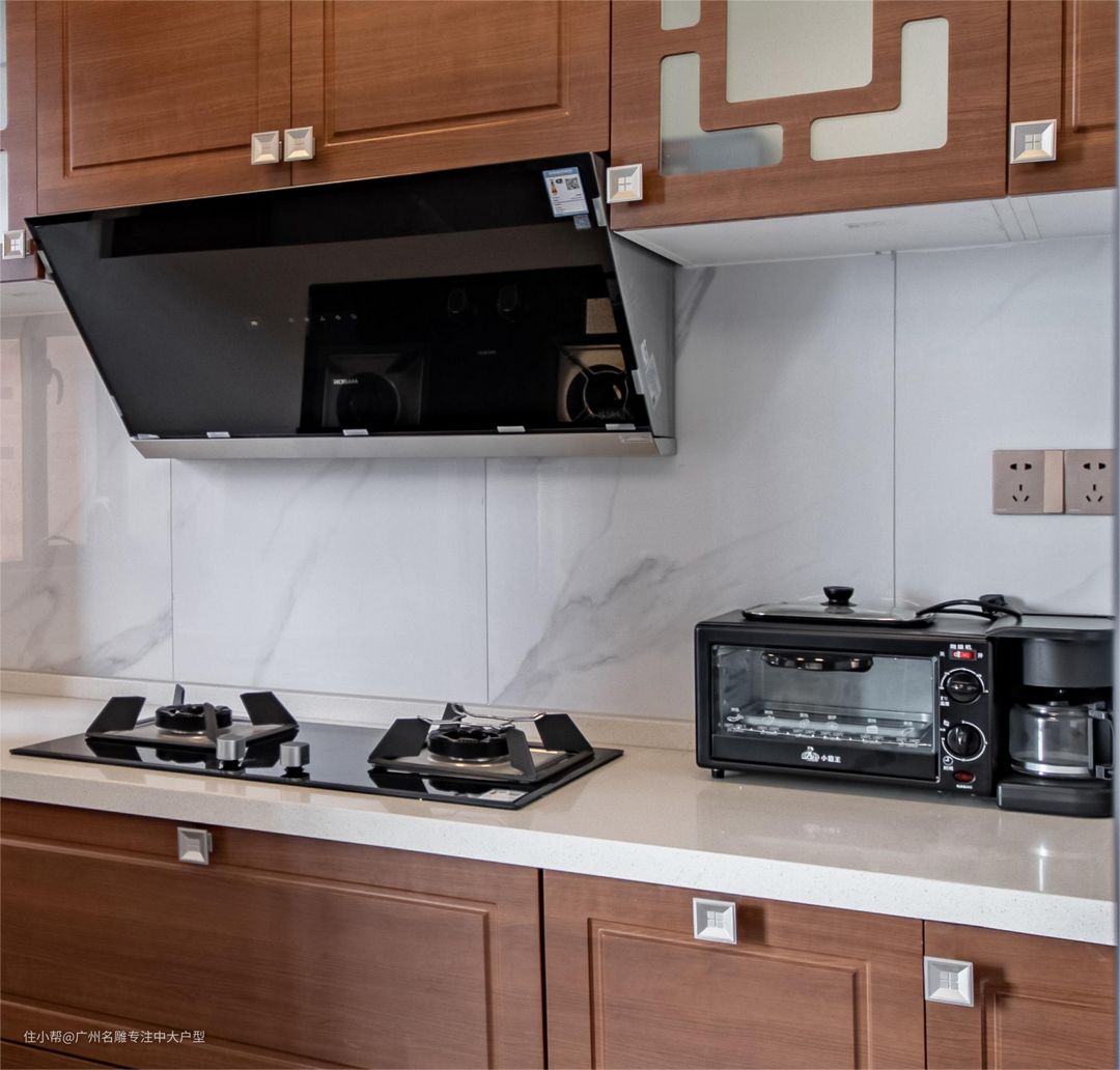选用原木橱柜门板,强调空间艺术属性,但日常也要保持干燥整洁,才能历久如新。