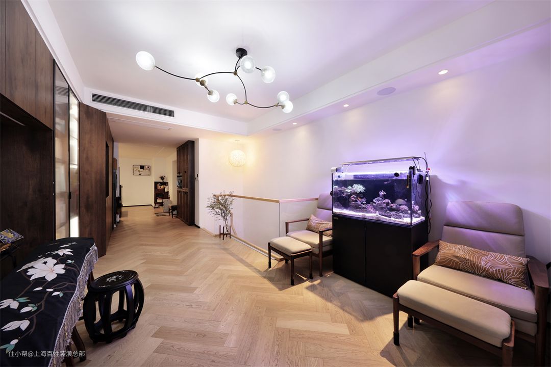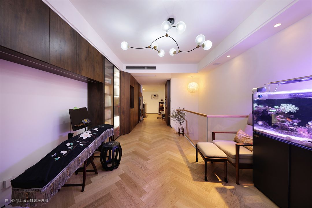 同时,为女主人弹奏古筝打造了一个专属的空间,为生活增添艺术气息。另一侧打造成放松的休闲区,颇有生活闲情雅趣。