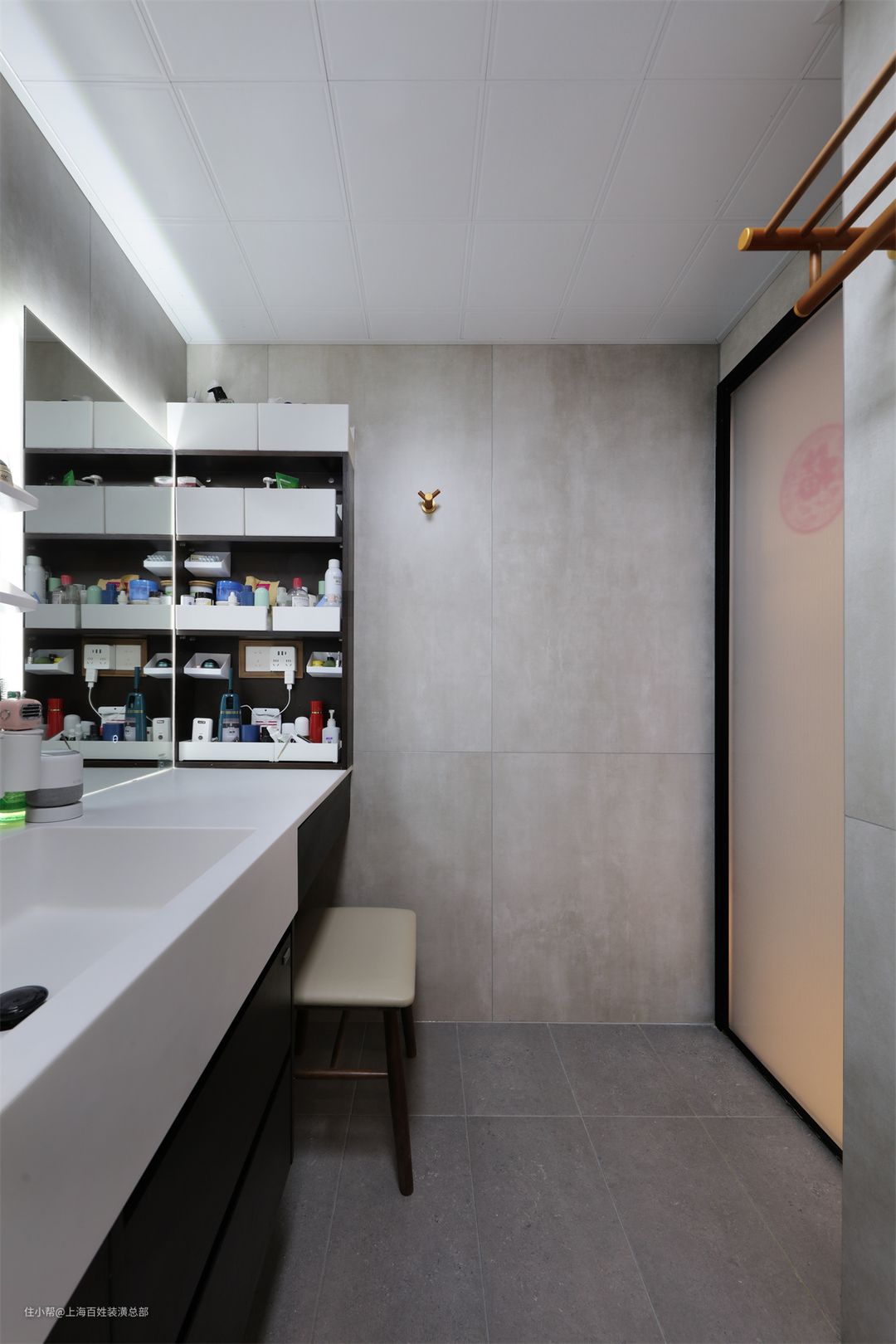 主卫采用浴缸和干湿分离设计,充分满足业主个性化需求。次卫光线欠佳,设计师别具匠心设计了一块玻璃墙,来增加卫生间的采光和通透感,同时使用玻璃材质也能更好的起到防水防潮功能。