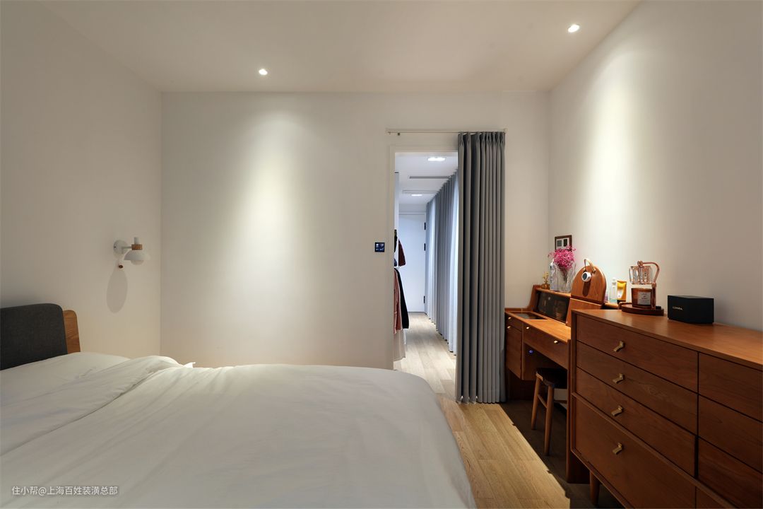 主卧采用套房设计,搭配梳妆台和衣帽间,满足日常穿搭需求,将角落空间利用到最大化,同时无主灯设计,将卧室的静谧氛围烘托得刚刚好。