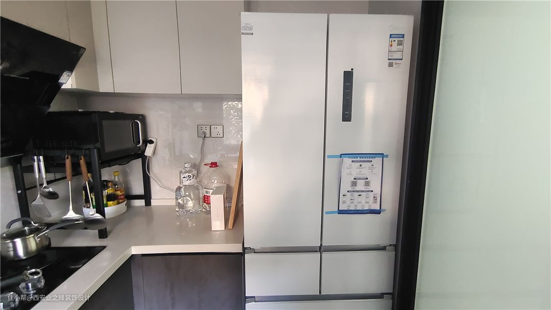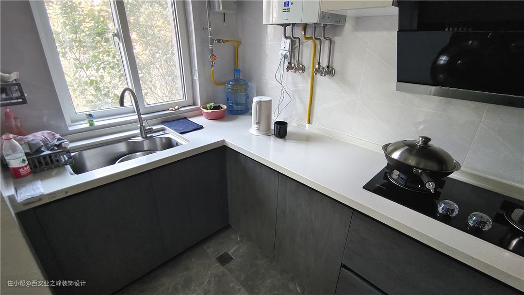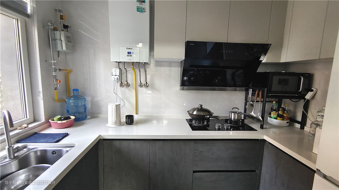 厨房U型设计,采光也比较好,白色与灰色搭配,整个空间干净明亮。