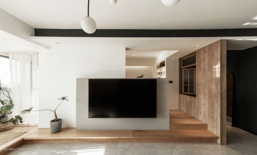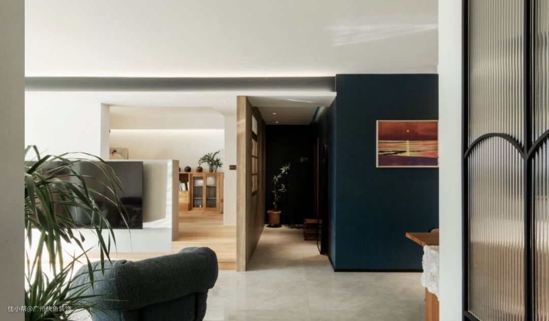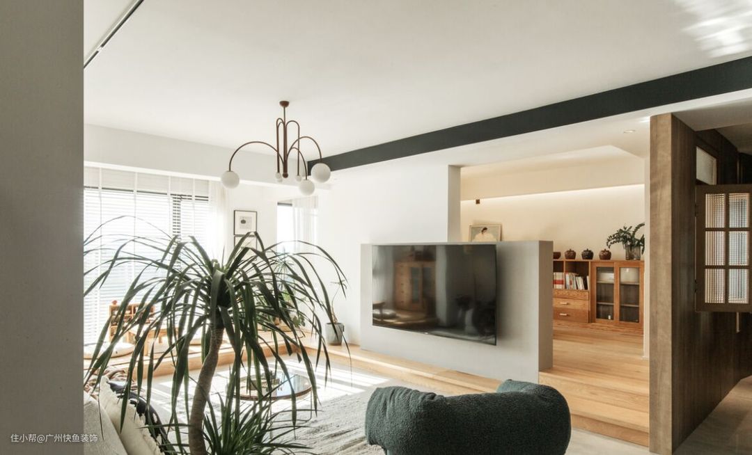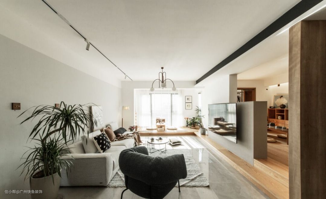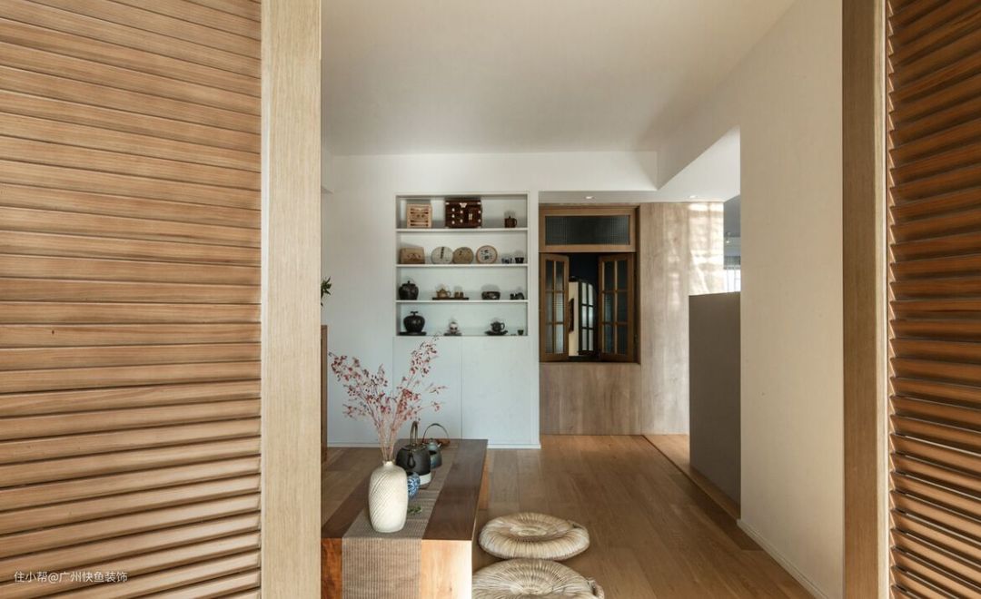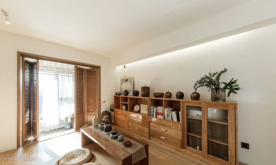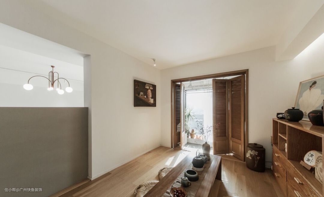 阳台看进去视角,集喝茶/阅读/冥想/客房,一体的多功能空间,拍摄那天阳光很好,通过这扇折叠门是洗衣阳台,和客厅形成洄游动线.