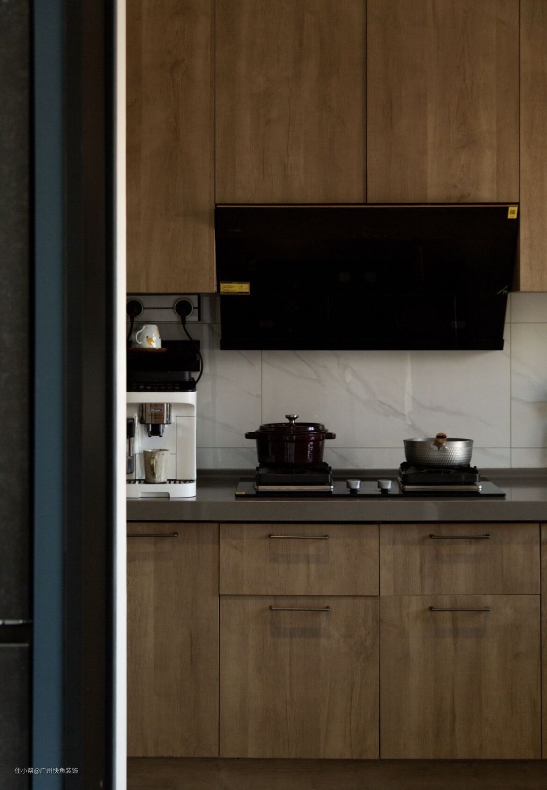 厨房的入门视角,厨房的动线设计根据业主自身动线习惯量手定做,下厨更方便。