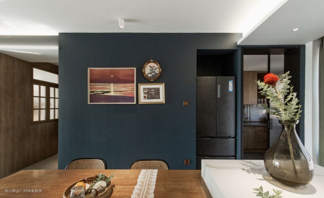 图一冰箱上方原设计是有隔板,后期放收纳盒。左手走廊是入户玄关区,右手边进去是厨房。