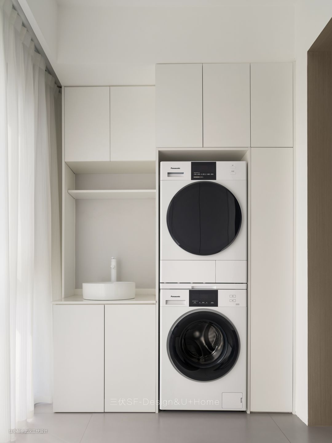 吊柜收纳空间+地柜储物空间+烘干机+洗衣机