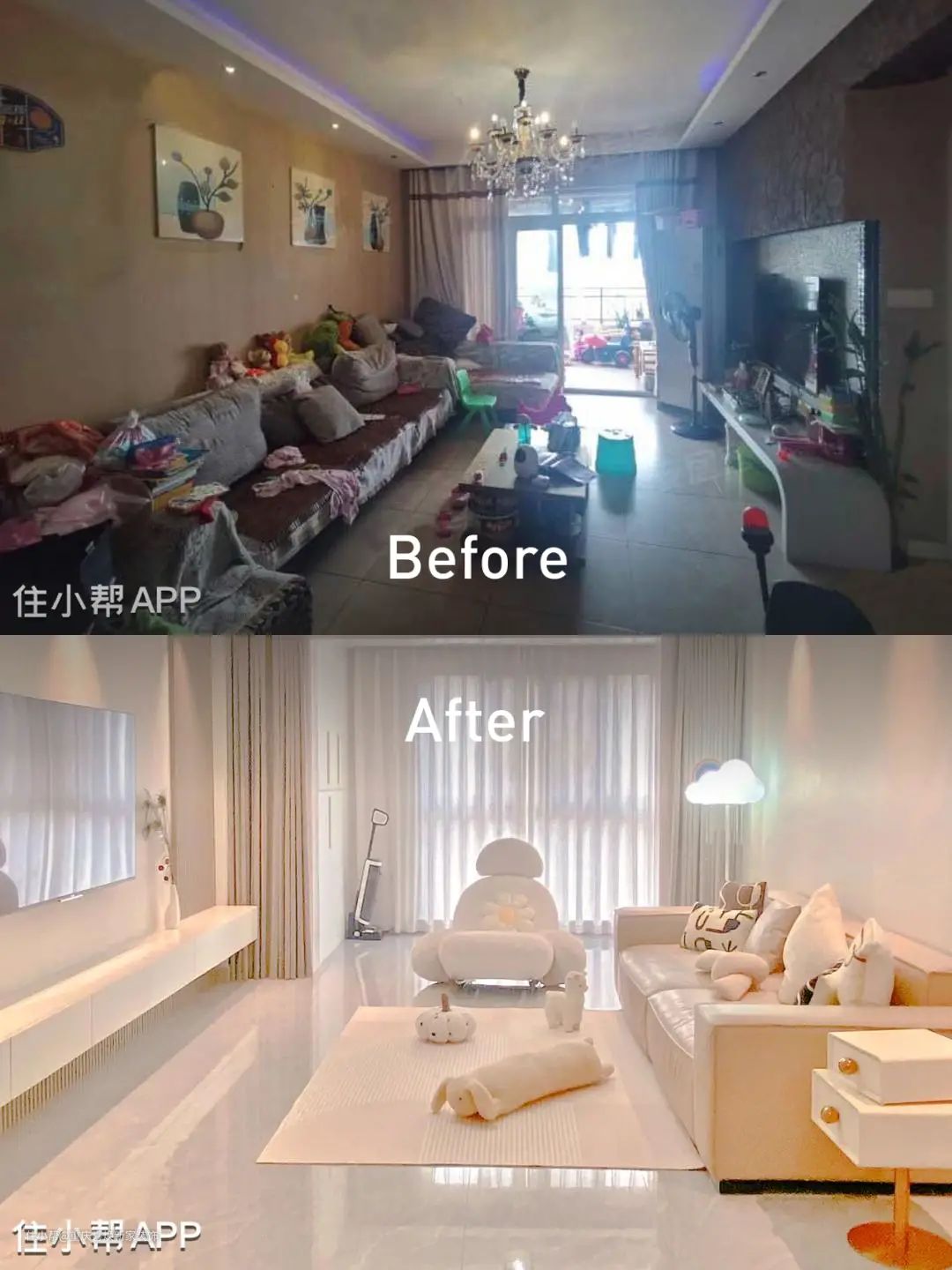 本屋案例是一个两室两厅的格局,整个房屋不算大也不算小,家里常住的是一对中年夫妻和他们的女儿,两人都是教师,平时对于生活的要求品质比较高,但以前因为孩子比较小,在家总是乱画乱摆,所以家里面总是一团槽,收拾了没几分钟又乱了。现在孩子终于大了,两人就商量把家重新装修升级一下。 设计亮点: 装修前 ①原本的房屋整体格局相对来说比较大,但采光非常昏暗,这不仅是由于没有做好设计,在墙纸和装饰的选择上也没有做好搭配,把整个家显得又脏又乱。 ②收纳是一大问题,客厅没有设置足够的储物收纳,导致东西只能东摆西放。 装修后 ①把原本客厅与阳台之间的区域拉通,既增强了整体空间又提高了美观度。 ②把收纳功能主要集中在阳台区域,这样既与客厅有一定的分区感,也把空间最大利用化。