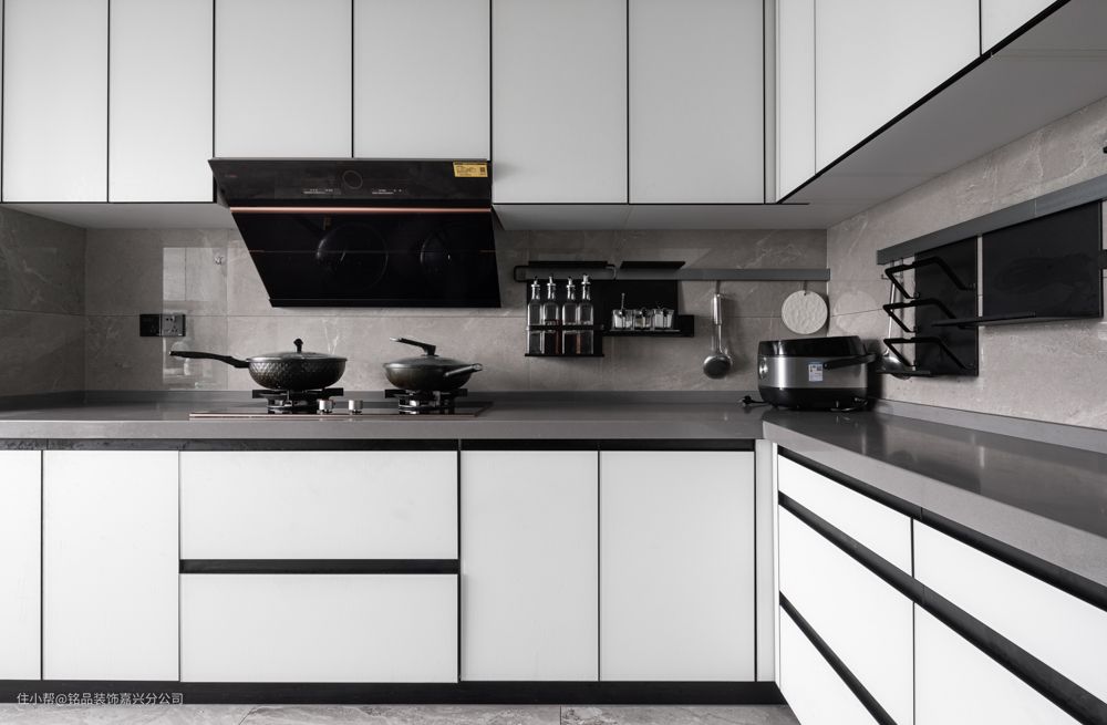 厨房空间设计为转角“L”型动线,操作空间更大,搭配西厨使用,足以满足一家人各式“煎炸烹煮”的用餐需求。