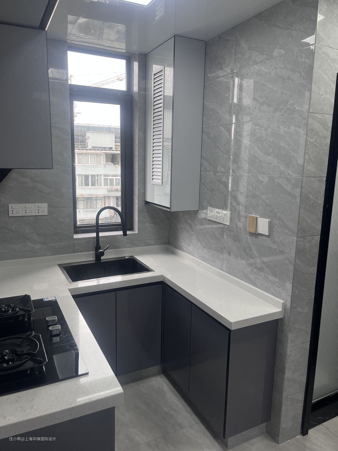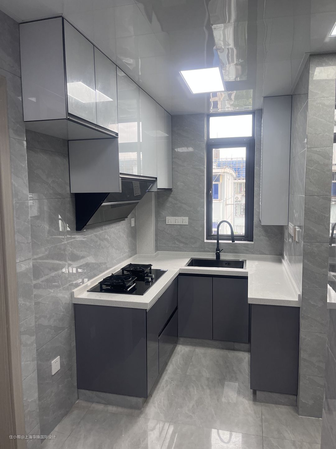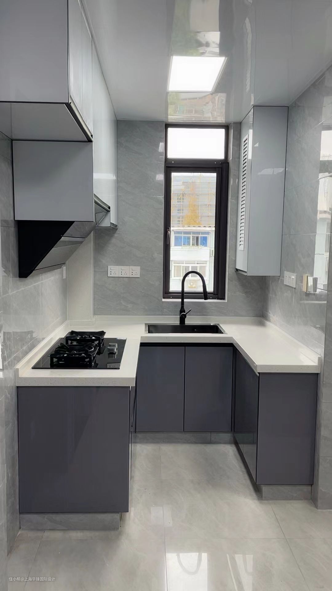 厨房打薄墙体增加宽度,卫生间墙体也是重新砌筑单墙,厨房设计的U型厨房!