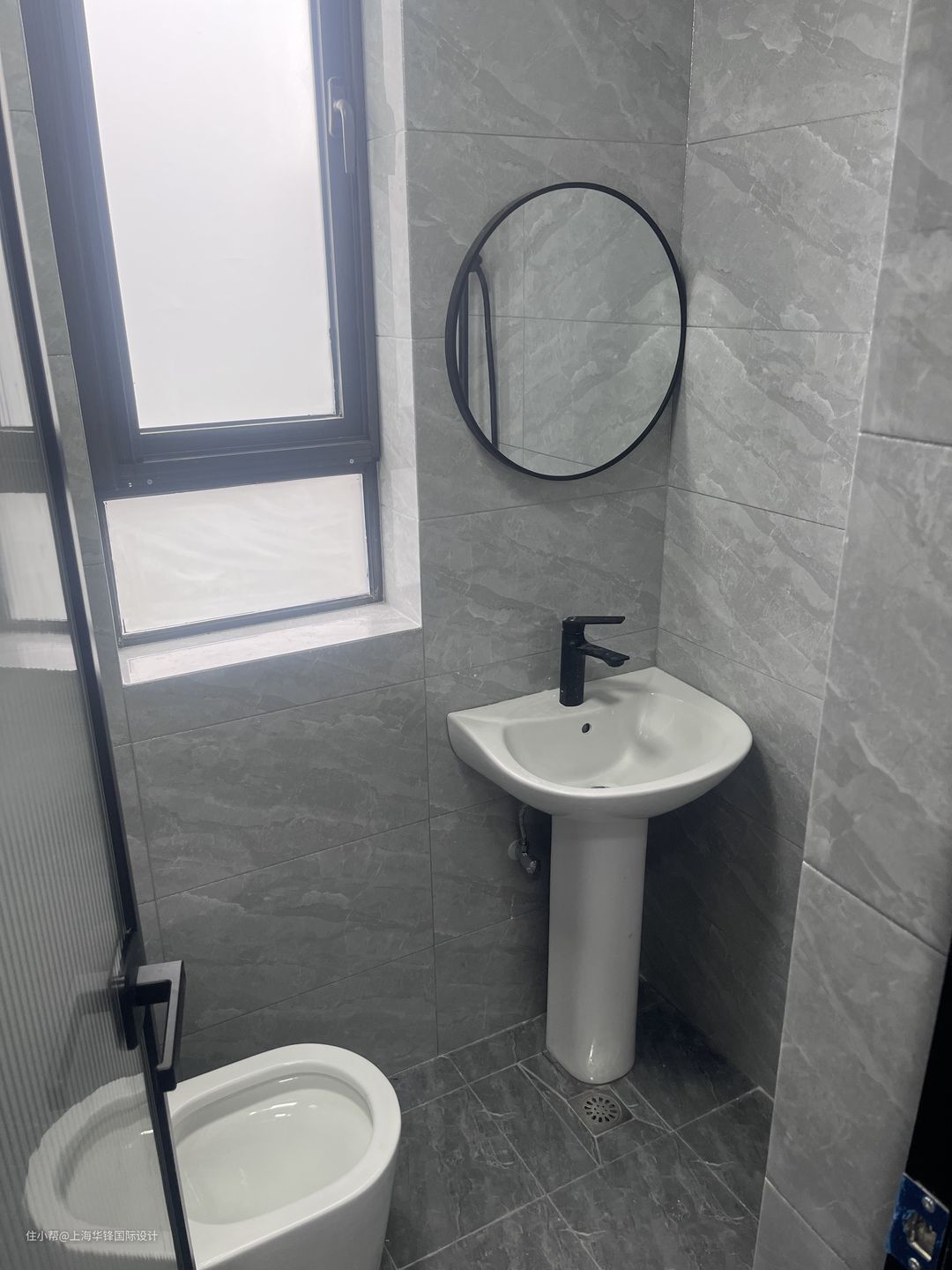 卫生间的立柱式台盆以及门口的高低差坡度满足水不外漏,普通马桶预留电加热后期可以增加电加热马桶盖!