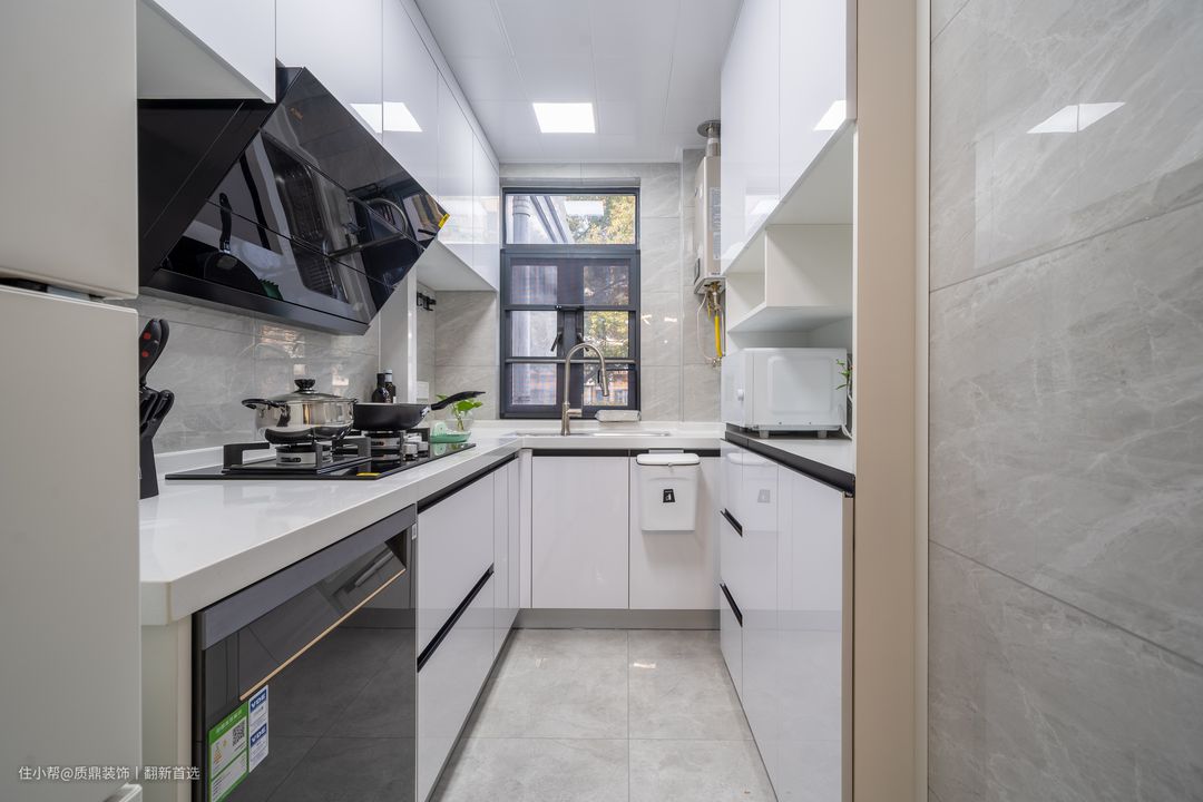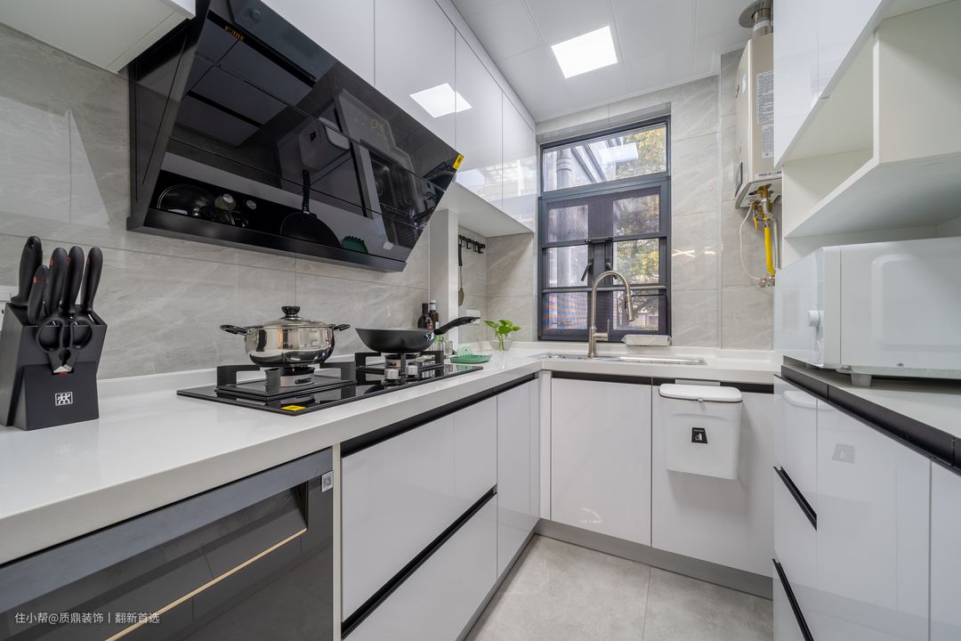 厨房U型橱柜,以白色为主,整体简洁且明亮!