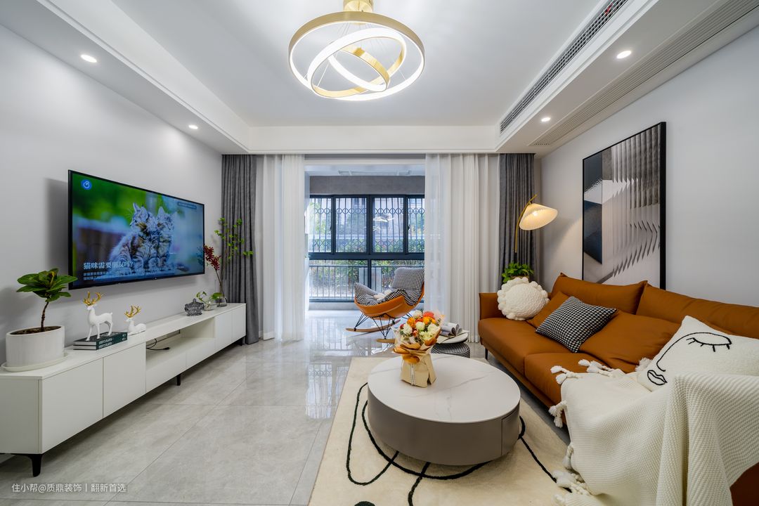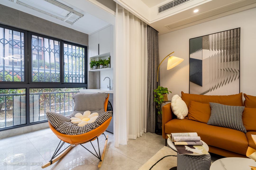 空间较为紧凑,选用精致小巧的家具搭配,色彩及造型较为小清新; 阳台拥有超大的落地窗,因为屋内采光尤为明亮。 没有过多的装饰,简即是奢~