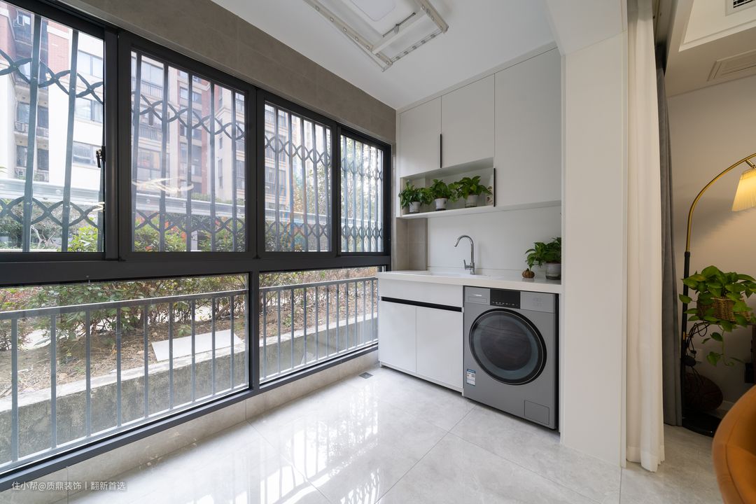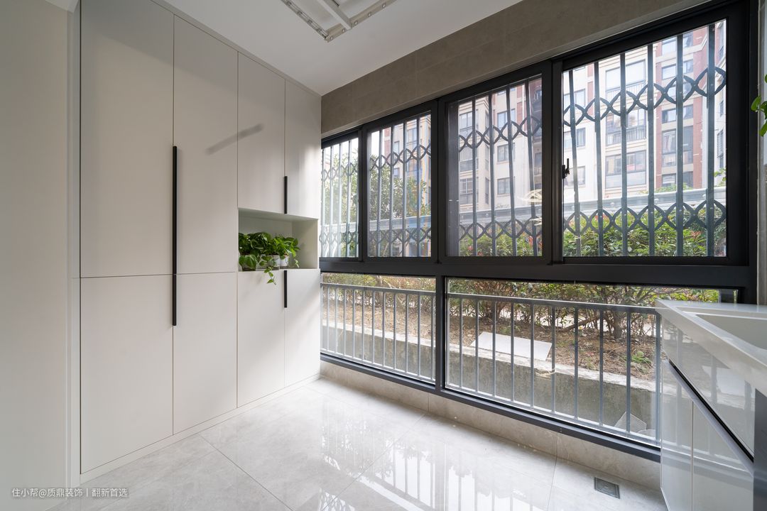 阳台也充分利用上,一边打造阳台柜,提升空间储物功能。另一边为洗衣区,超实用~