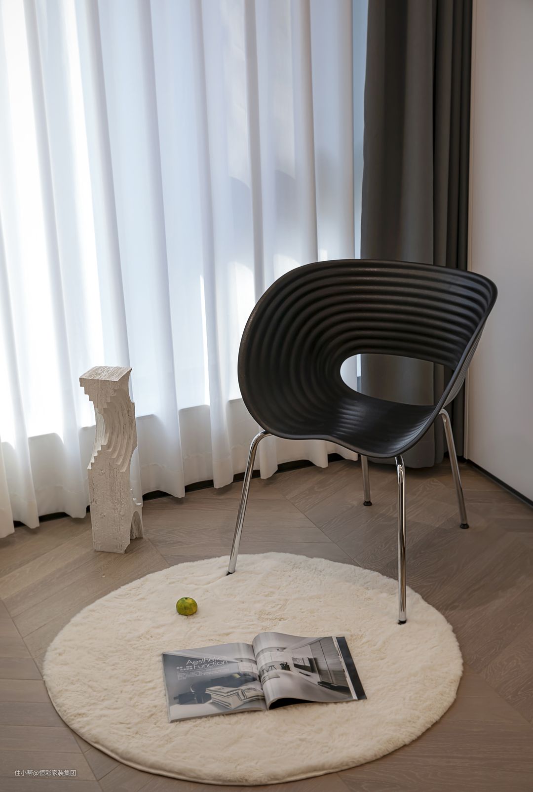 黑色休闲椅简约实用,带来视觉上的轻盈感,造型独特的落地灯加分。