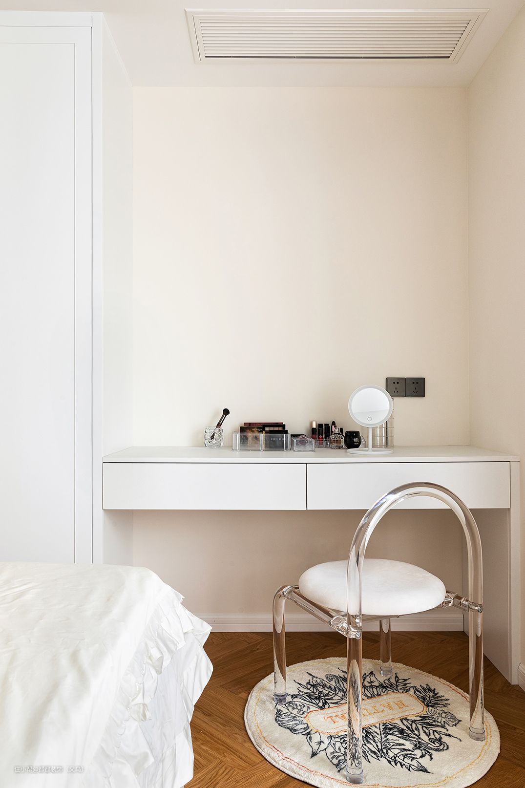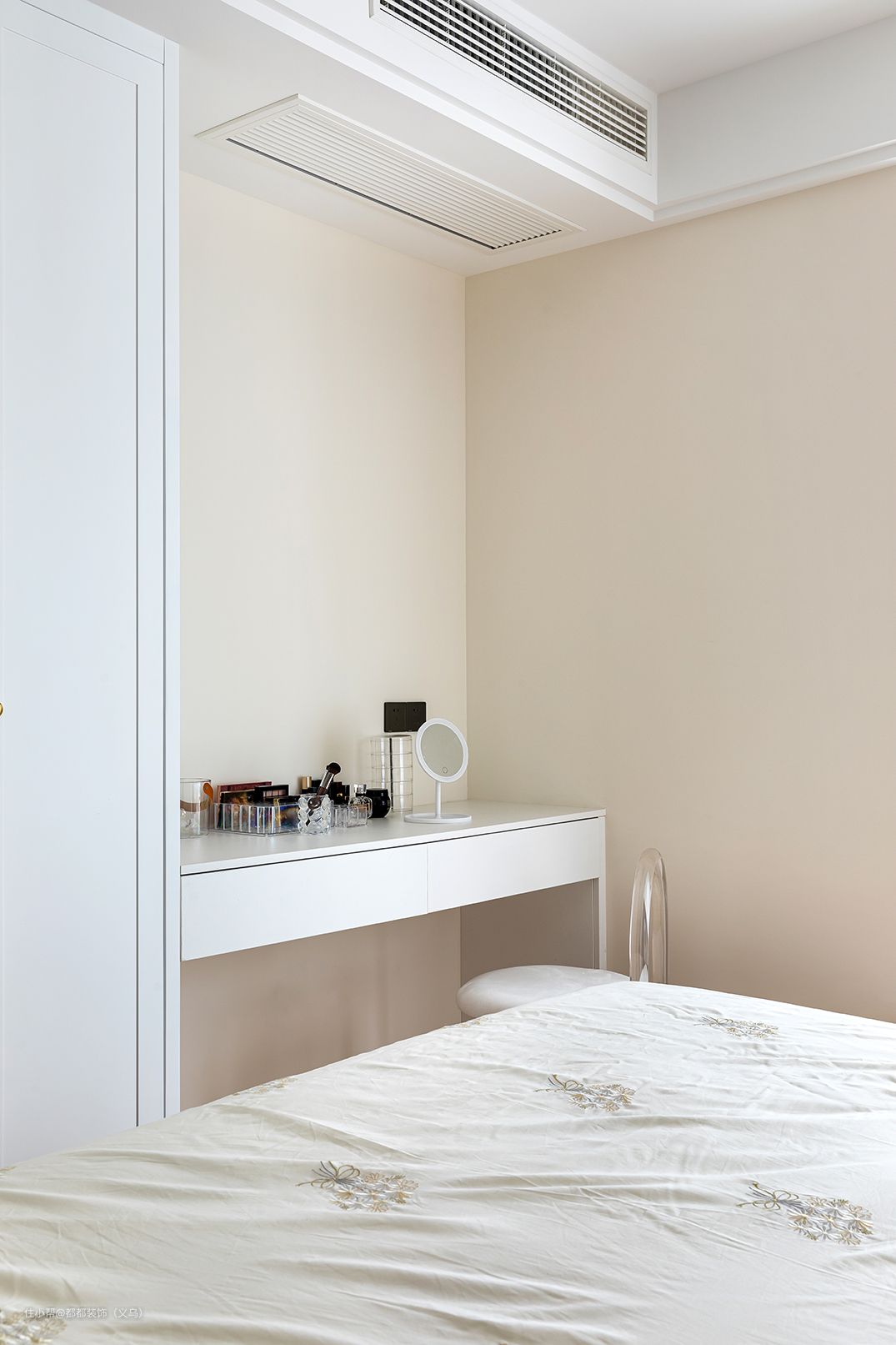 小户型必备衣柜和梳妆台一体,省空间+强收纳,绝绝子!宽度40cm的悬浮梳妆台,来一套沉浸式美妆完全够用,白色桌面搭配透明化妆椅,功能与美样样都不少,靠窗的布局让化妆时的光线不再晦暗,又能营造柔和的轻盈感。