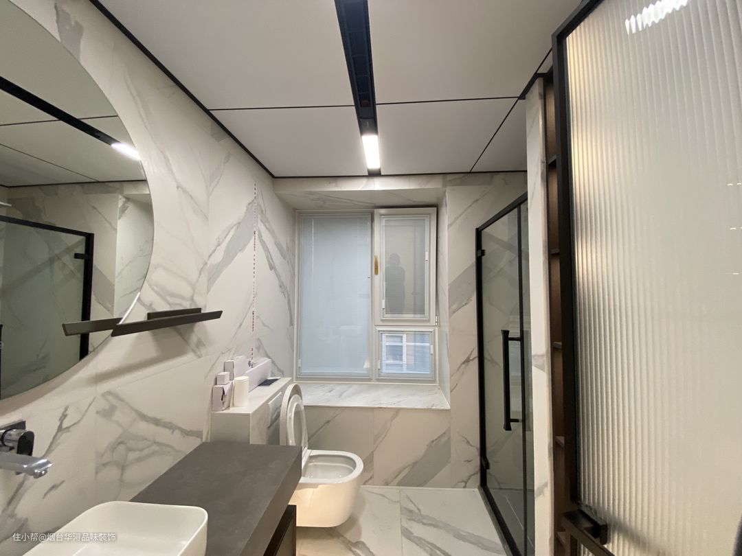 卫生间的格局在前期的平面布局就预留出来了淋浴区,干湿分离空间也足够使用,因为使用频率较高,卫生间的品质感还是很重要的,在储物收纳这方面也是下足了功夫。除了壁龛还有一整列的收纳格。