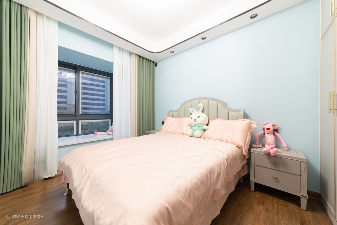 客卧保留下来,改造得比较温馨,因为儿子的对象,说好年底会来拜年,甚至铺上了很温馨的粉橘色被褥,还摆上各种小动物玩偶,可以说很细心周到了!