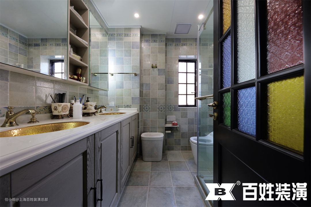 三个卫生间采用不同风格设计,满足业主的个性化需求。 一楼客卫,颇具年代感; 二楼主卫双台盆设计,使用更便捷; 三楼卫生间,更具现代感。