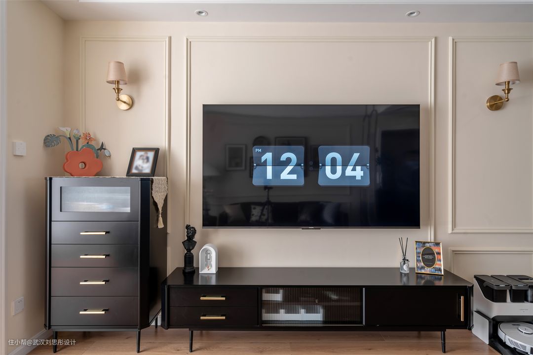 在客厅和阳台打通,充足的光线让整个客厅更加温馨明亮。整个墙面采用立邦魔术漆小羊皮系列的“荷兰乳酪”(荷兰乳酪NN3401-4),柔柔的奶茶色,介于白色和杏色之间的暖色调,更有慵懒的感觉,加上立体感十足的线条,不仅增加了立体感,也提升了空间的精致度。