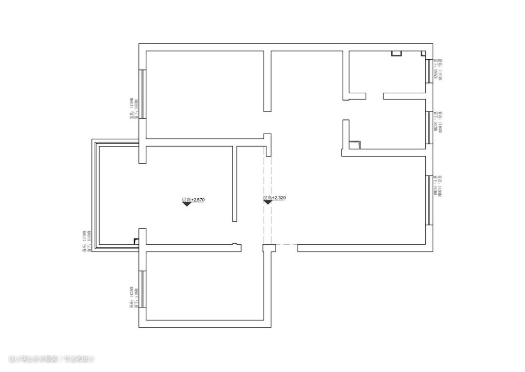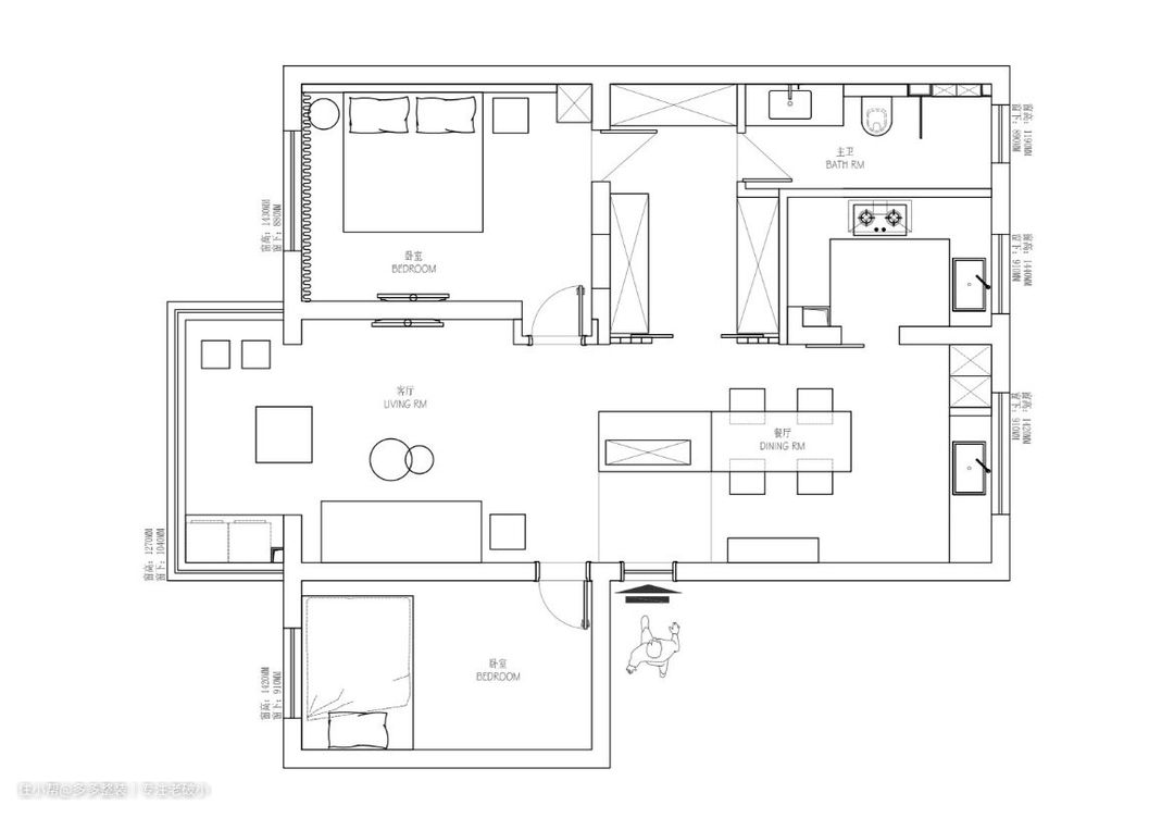 原户型其实非常周正,虽然格局不太合理,也算是南北通户型,而且卧室都朝南,采光极好。 但是被上家改成了三房后,南北通的优势瞬间荡然无存,还浪费了一个好阳台。 缺点也很明显: ① 餐厅位于主卧与厨卫之间,非常拥挤,通风采光都不好。 ② 进入卫生间,需要先经过厨房,非常不方便。 ③ 每个空间都相对独立,没有关系补充,更没有储物功能。