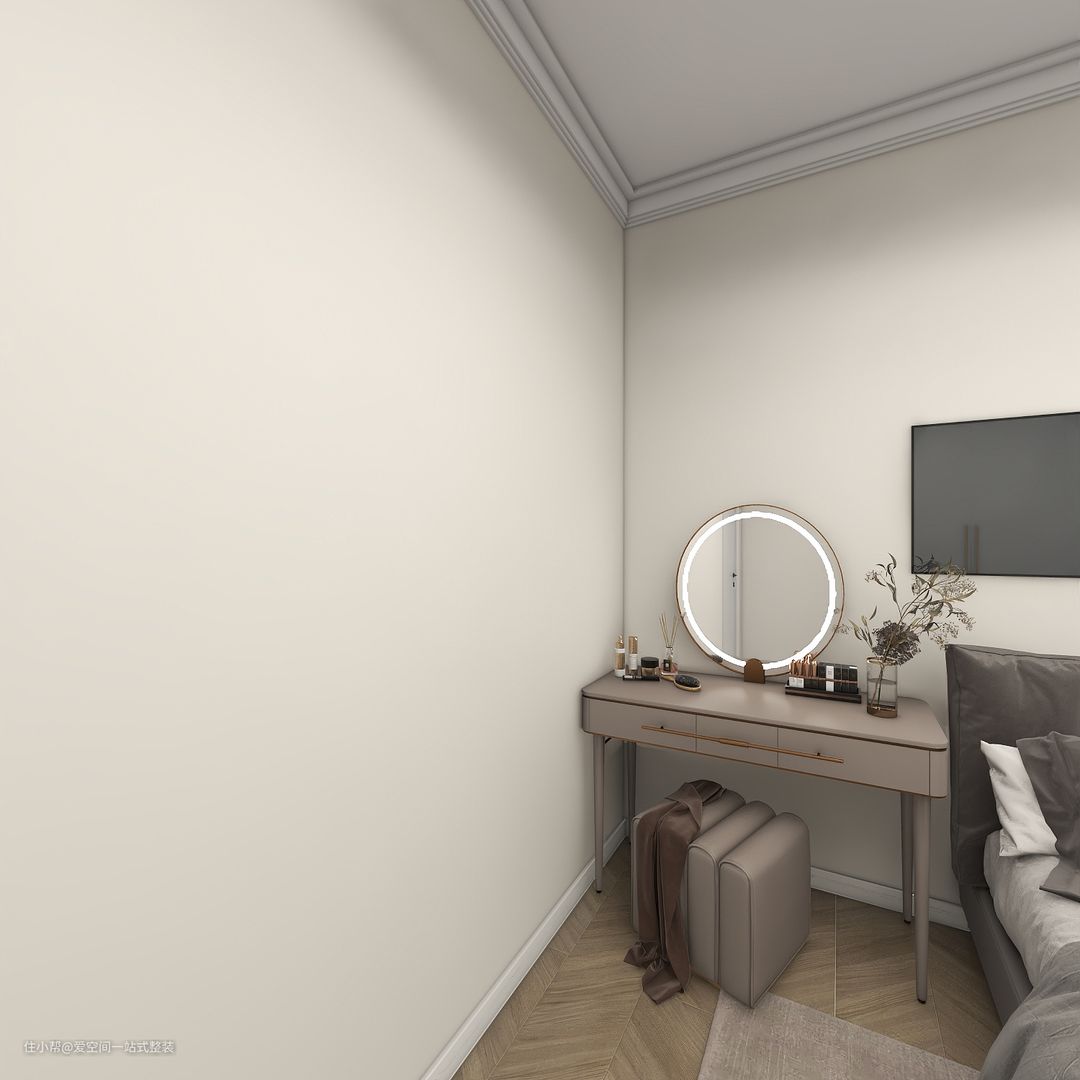 主卧空间不大,放了床和衣柜后便没有太多空间,所以用化妆桌代替了床头柜,化妆收纳都能兼顾,偶尔充当一下书桌也十分方便。