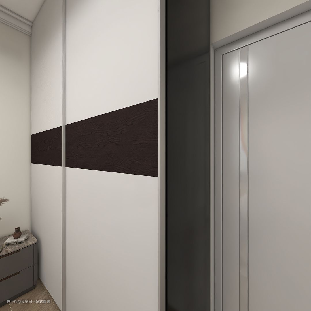 次卧空间比主卧还要小,为了节省空间,衣柜做了推拉门的设计,过道空间还能放个迷你的床头柜,日常生活非常方便。