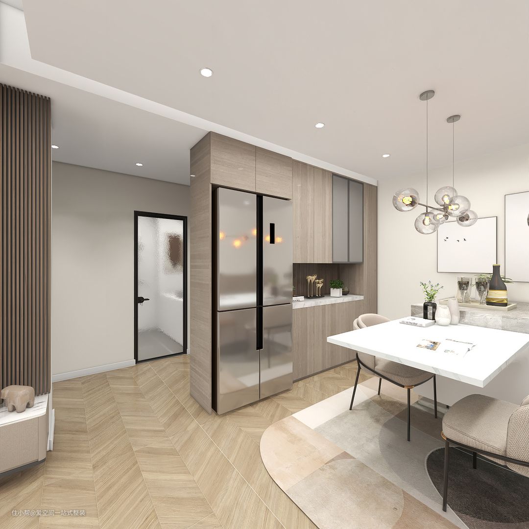 【屋主介绍】 屋主是一对年轻夫妻,对生活品质有着极高的要求,所以在装修上花了不少心思。 整个空间布局以简约舒适为主,搭配高档定制家具,处处透露着精致与优雅。 【屋主需求】 1.女主人在医院工作,对家里的卫生要求较高,希望有一个独立的家政区。 2.夫妻两人工作都很忙,希望卫生间能有一个浴缸,可以泡澡放松。 【房屋信息】 面积:70㎡ 风格:轻奢 户型:2室1厅1厨1卫 装修成本: 14万 地点:广州 【设计方案】 1.客厅休息区是无主灯设计,简洁明快,视觉上层高更高,照明也更加均匀。 2.客厅电视墙以木质板+栅栏做装饰,电视柜和墙面装饰相呼应,整体效果协调统一,十分有大宅风范。 3.厨房的阳台做成了洗衣房,衣服机洗、手洗、烘干一气呵成,让生活更加便捷。 4.卫生间没有做淋浴房,节省出来的空间安装了一个浴缸,劳累了一天后可以泡个热水澡,缓解一天的疲劳。