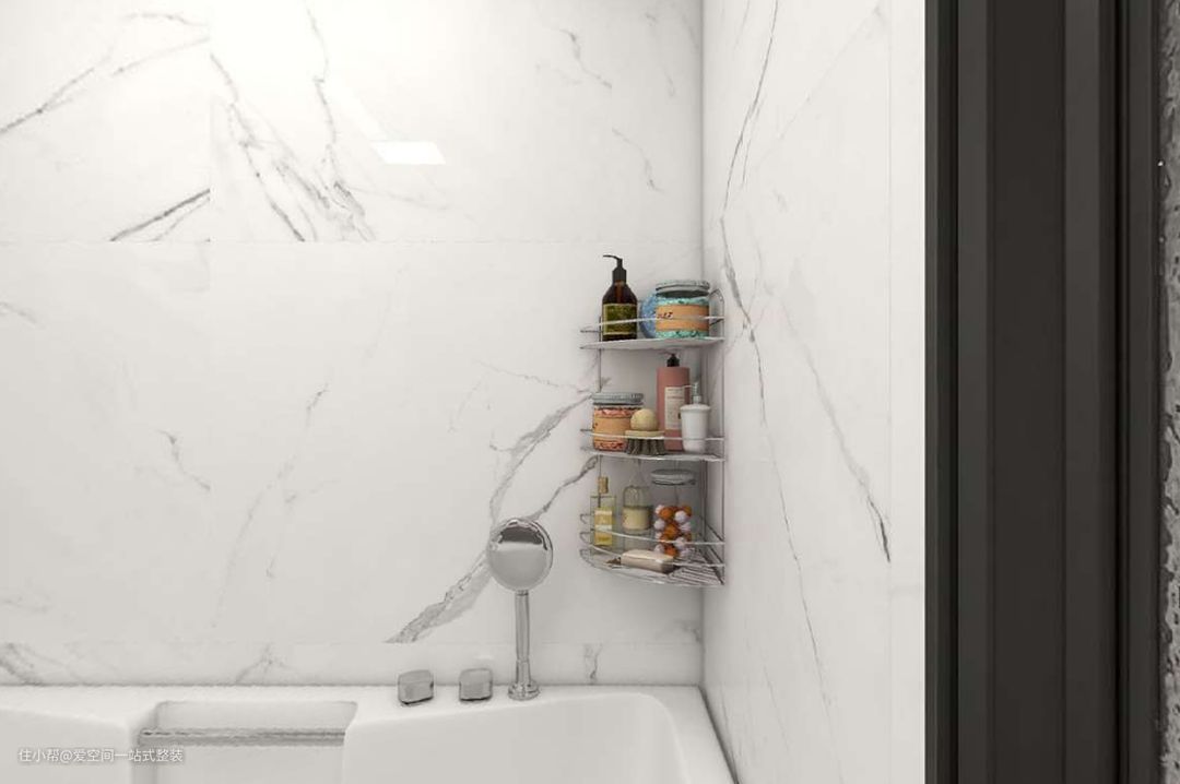 卫生间只有6㎡,没有做独立的淋浴房,而是靠墙安装了一个浴缸,下班后可以在这里泡个热水澡,享受一下惬意的生活。