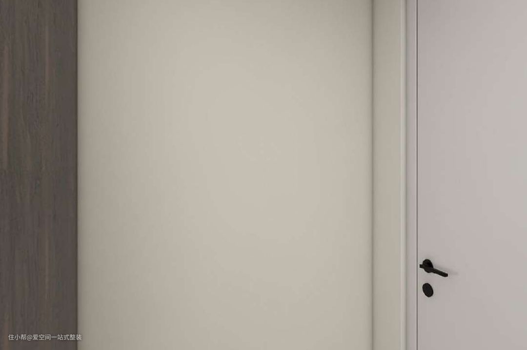 床尾的衣柜是一门到顶的设计,不仅收纳空间强大,白色的柜门搭配原木色的把手,装饰效果也十分不错。