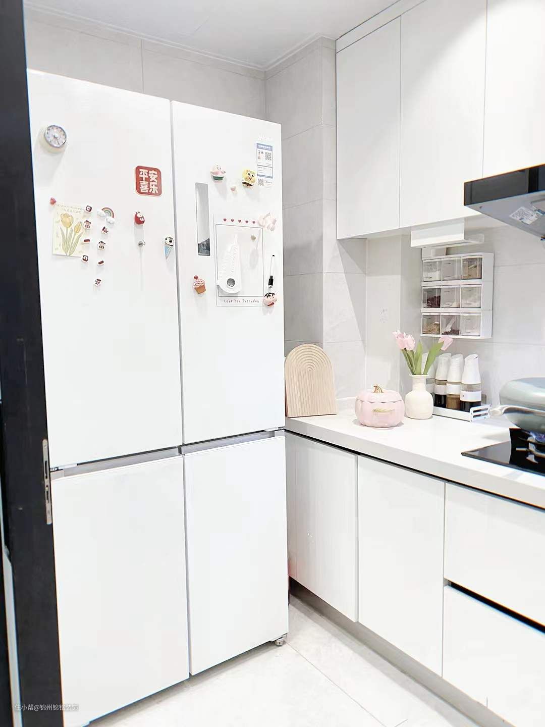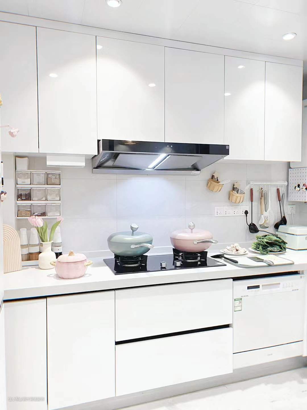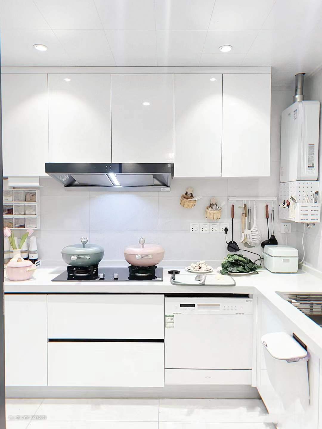 遮丑洞洞板,热水器的水管裸露在外面丑极了,50r买块洞洞板遮住,还可以收纳筷子笼特别实用,买的时候一定要量好尺寸哦,不要买小啦。墙收纳盒,调料盒、油壶、锅铲、刀具、筷子笼、菜板,统统都是上墙收纳的,白色台面尽量不要放物品,时间久了会有黄渍很难清除,低至几块钱就可以得到一个清爽的台面。