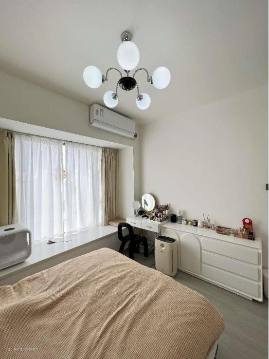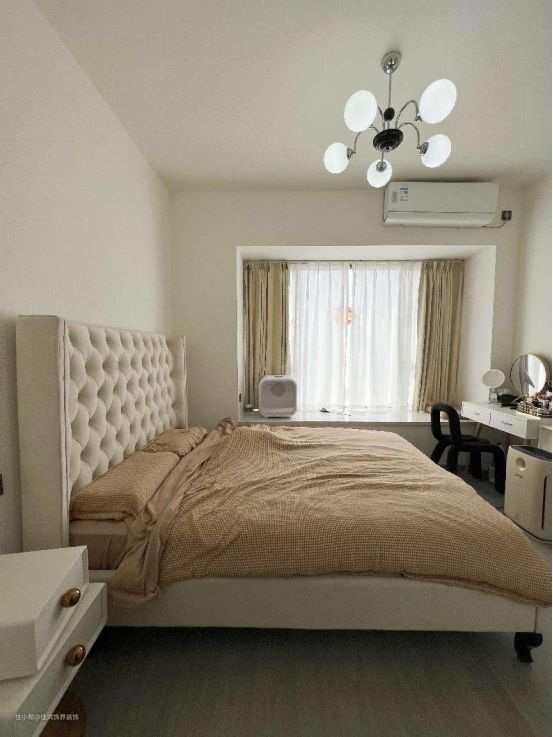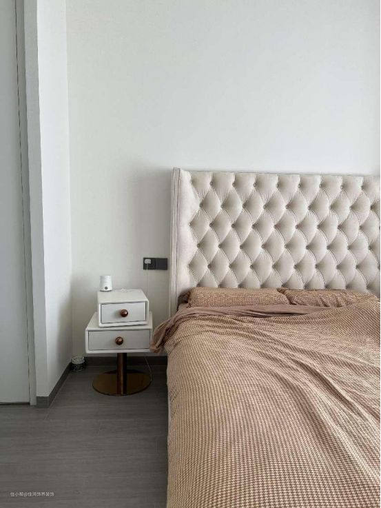 不囿于寻常,休憩所在更加的独立,将自由与闲适预留。圆润的拱门弧度以润物细无声的姿态包容繁杂,悄然呼应,于静谧空间温柔低语。流畅的洄游动线,聚焦到生活的一点一滴,平淡却精致温暖。 纯粹的白与自然的棕色交融,体会置身其中的舒适。菱格纹高背床,杂志风象牙白梳妆台、收纳柜以及创意魔豆灯的布置,干净通透不加修饰,将生活本真归还给居住者,晨光熹微,日暮黄昏,皆是风景。