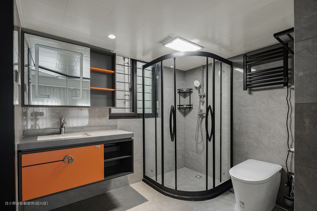 主次卫均做了干湿分离,大面积的大理石材质营造出空间的韵律感,洗手台做了大台盆,洗手台外移造型优美,又不用担心水花飞溅,配以银色水龙头美观而大方,在繁忙的生活中提高了洗漱享受,淋浴区宽敞干净,使家居生活更为放松舒适。