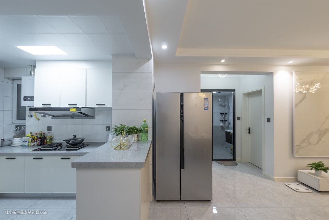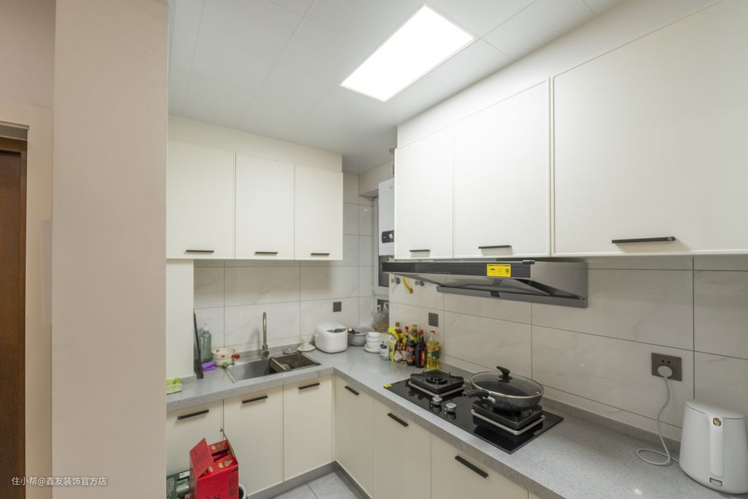 厨房搭配上白色的橱柜,清爽整洁,是理想的厨房样子。