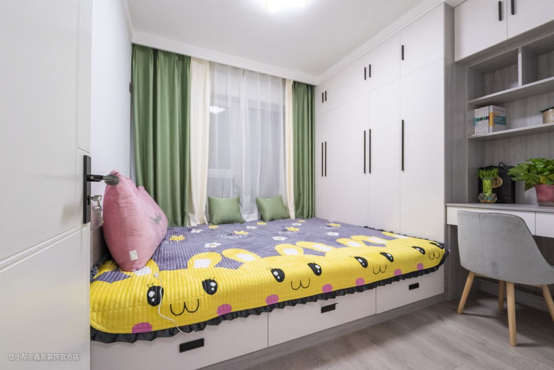 次卧榻榻米设计,增加次卧的收纳空间,合理利用空间,简洁又实用,轻松满足收纳和学习的需求,榻榻米的功能性和灵活性再一次被点满。