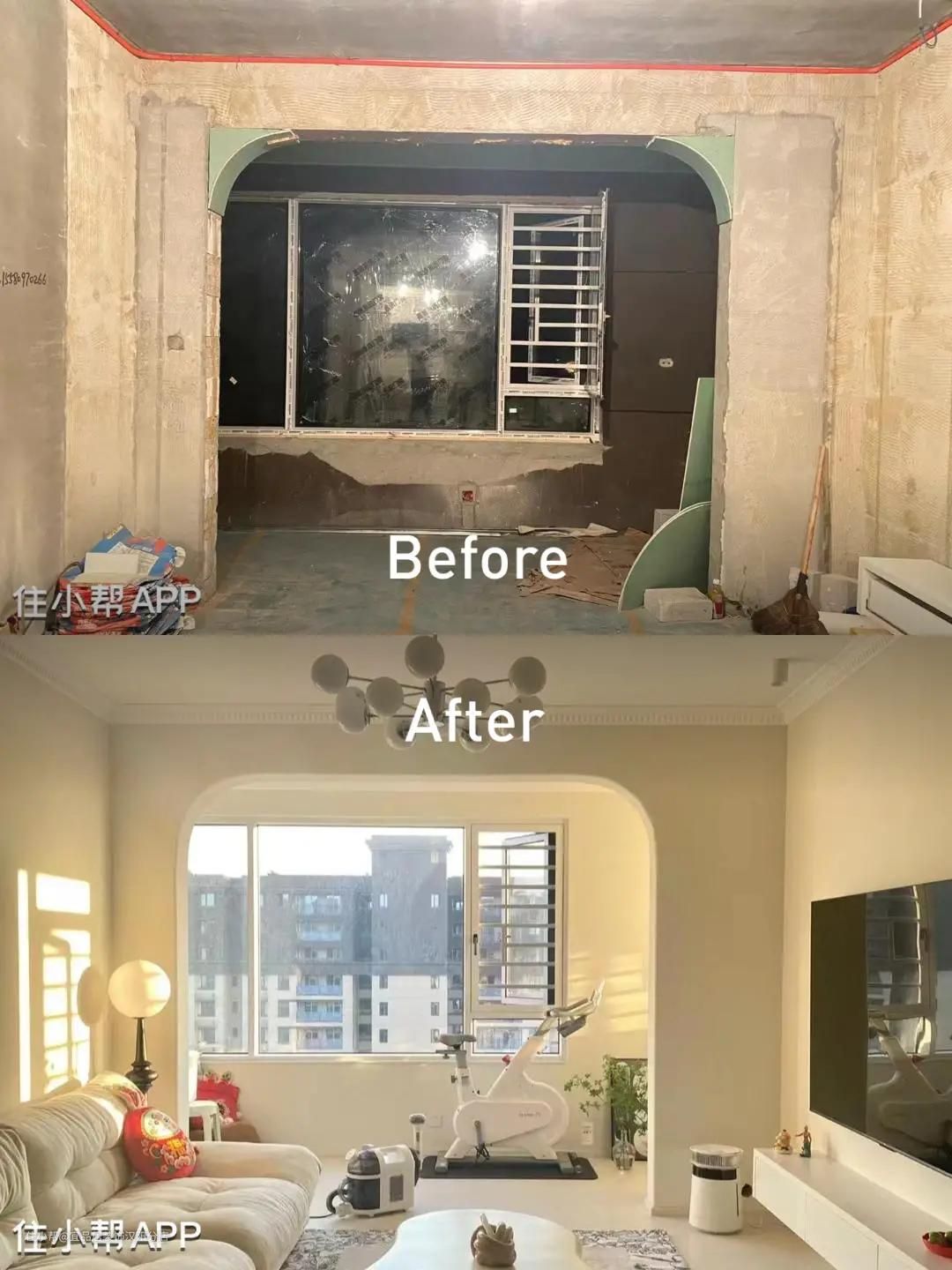 通铺600×1200的柔光砖,显大又通透 无吊顶,简单走一圈石膏线,不压层高 无背景墙,通刷杏子灰色乳胶漆