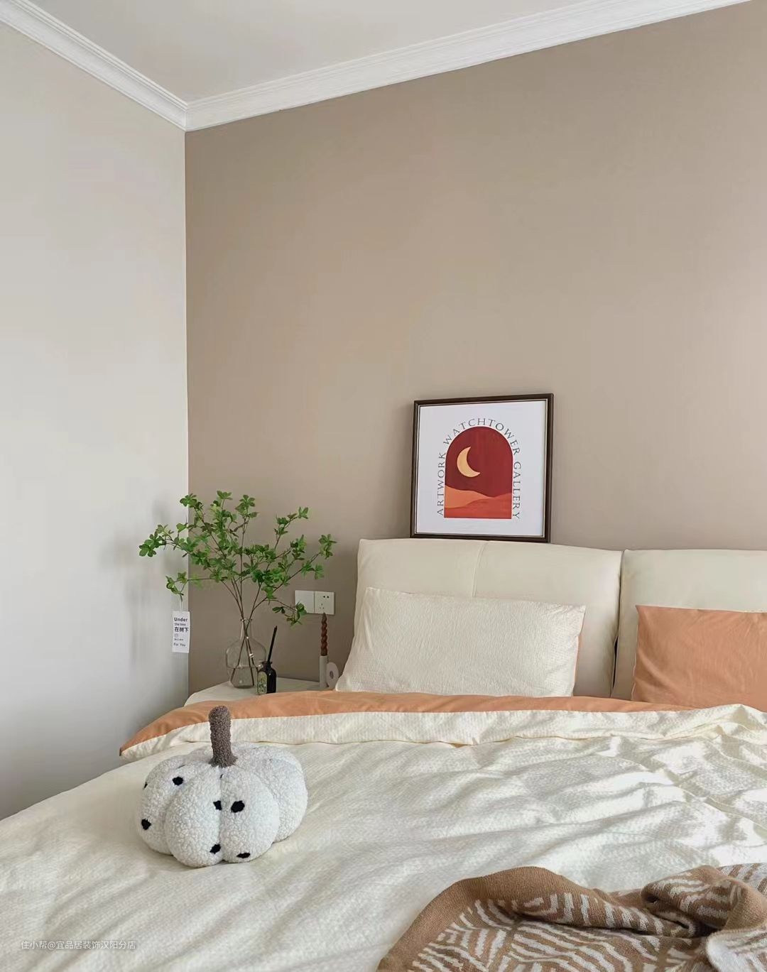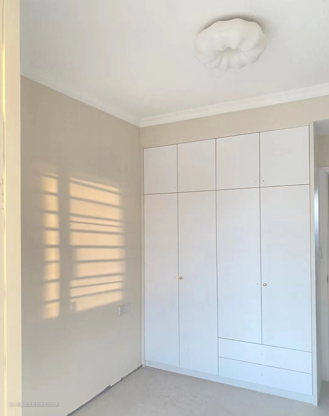 乳胶漆通刷可可蛋奶,阳光洒进来特别温馨 一面墙的衣柜,收纳空间非常充足