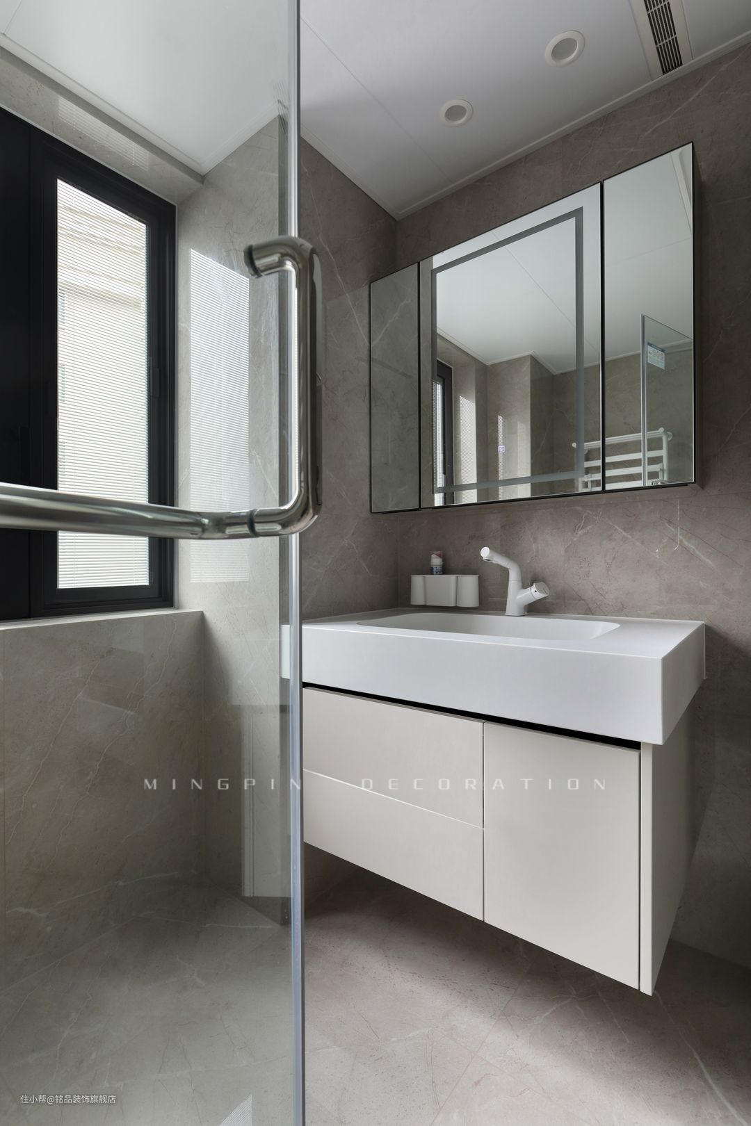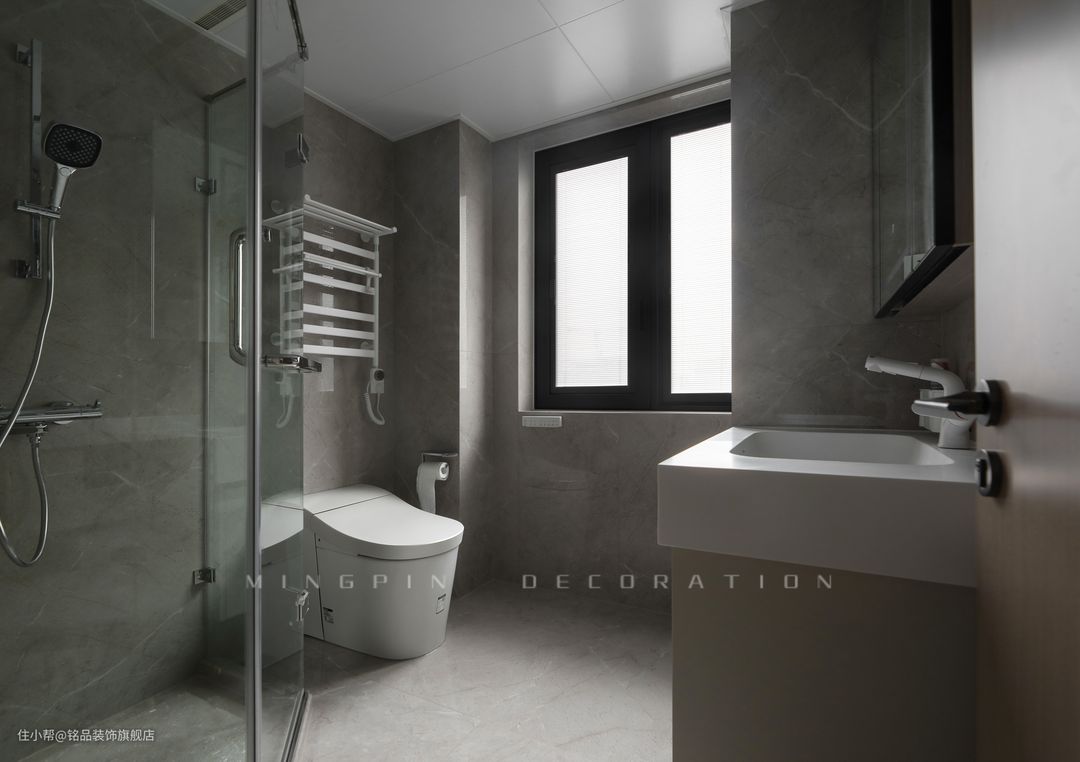 卫生间的每个细节都在散发着极简高级的韵味,遵从人体工程学的一系列原理,从使用便利、收纳空间进行简约处理,打造功能与审美统一的空间