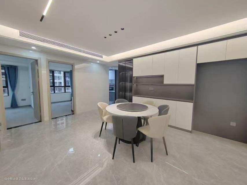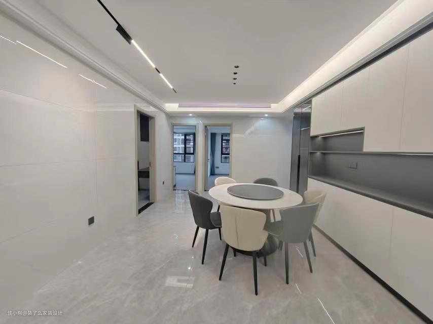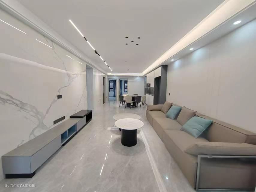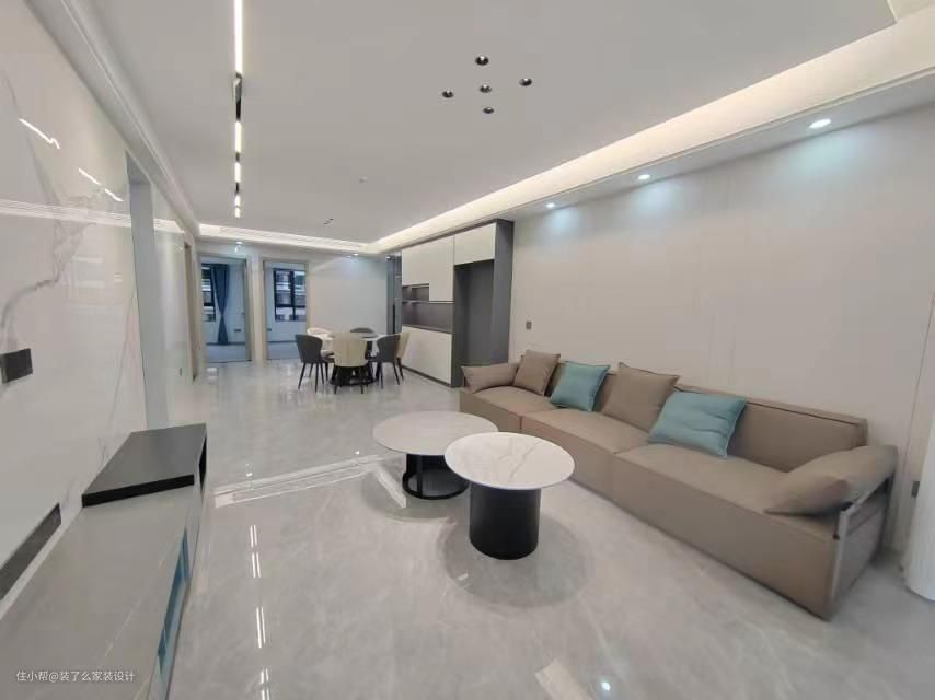 本案例是一套现代简约风新房实景,业主喜欢简单的生活格调,希望有一个和谐、精致和舒适的居住环境。无主灯设计是现代简约装修风格的重要元素之一,简单、干净、明亮。