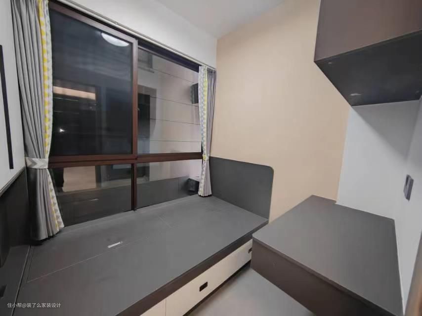 卧室空间灰色为主调,营造出简洁美观的氛围,配合窗外的自然光线,使整个空间看起来更加明亮舒适。