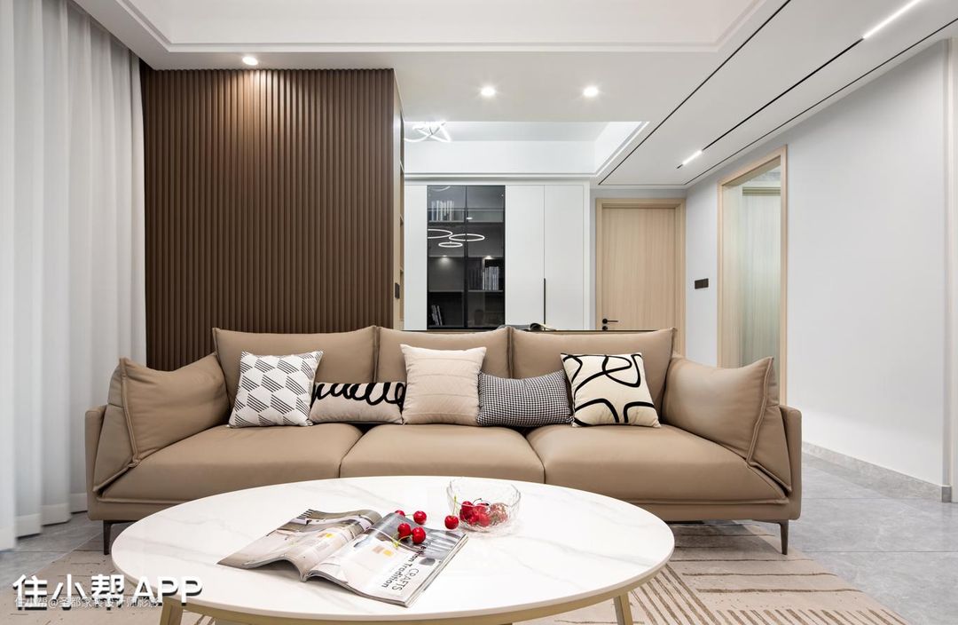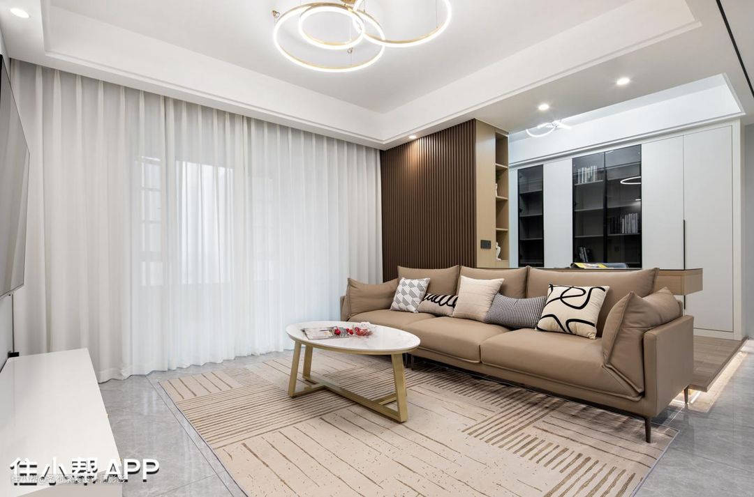 客厅整体硬装以白色为主,用米色软装作为室内色彩搭配。