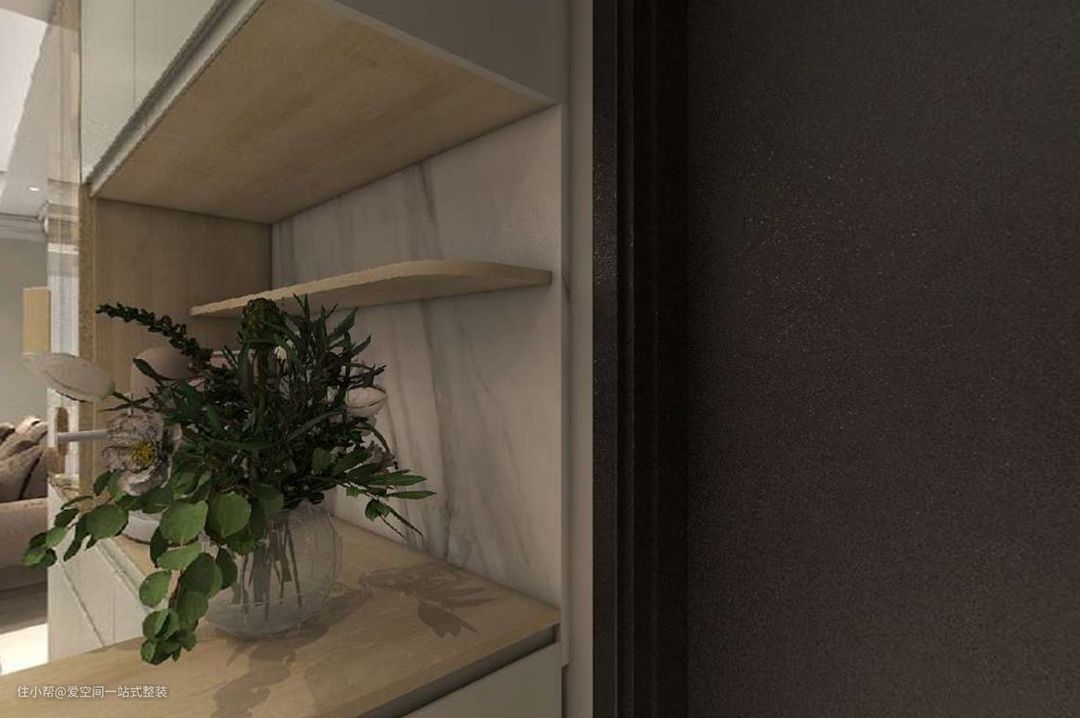 玄关以1.2m的矮柜做隔断,搭配收纳能力十分出色的玄关柜,打造的空间干净利落,既能满足日常出行需求,颜值也十分出挑。