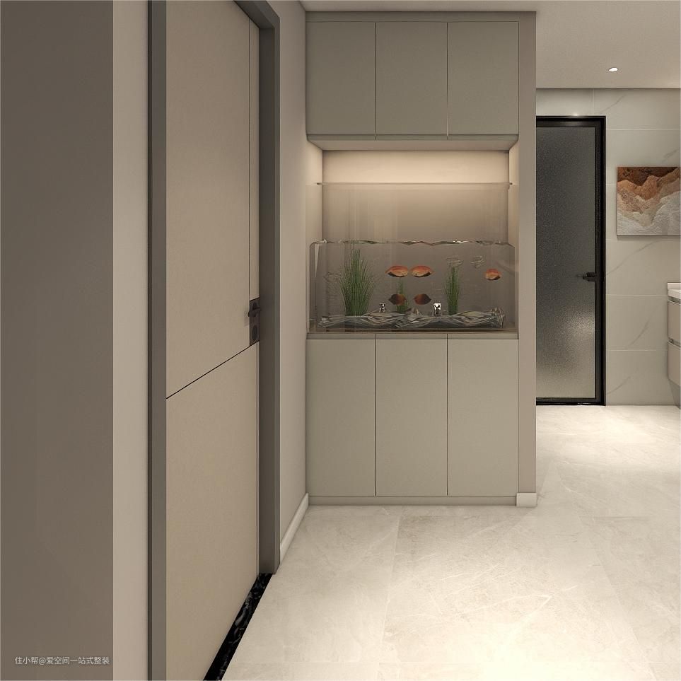 进门左侧的墙面还做了一组嵌入式鱼缸,据说可以招财,寓意十分好!