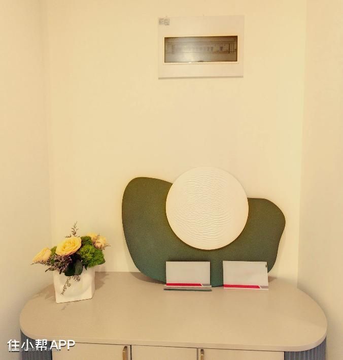 本期案例应业主的需求,在入门处设置玄关,本期玄关以长走廊的布局方式,墙面上悬挂大气壁画; 另置办一简约橱柜,便于忙碌一天后各式衣物鞋物的收纳。