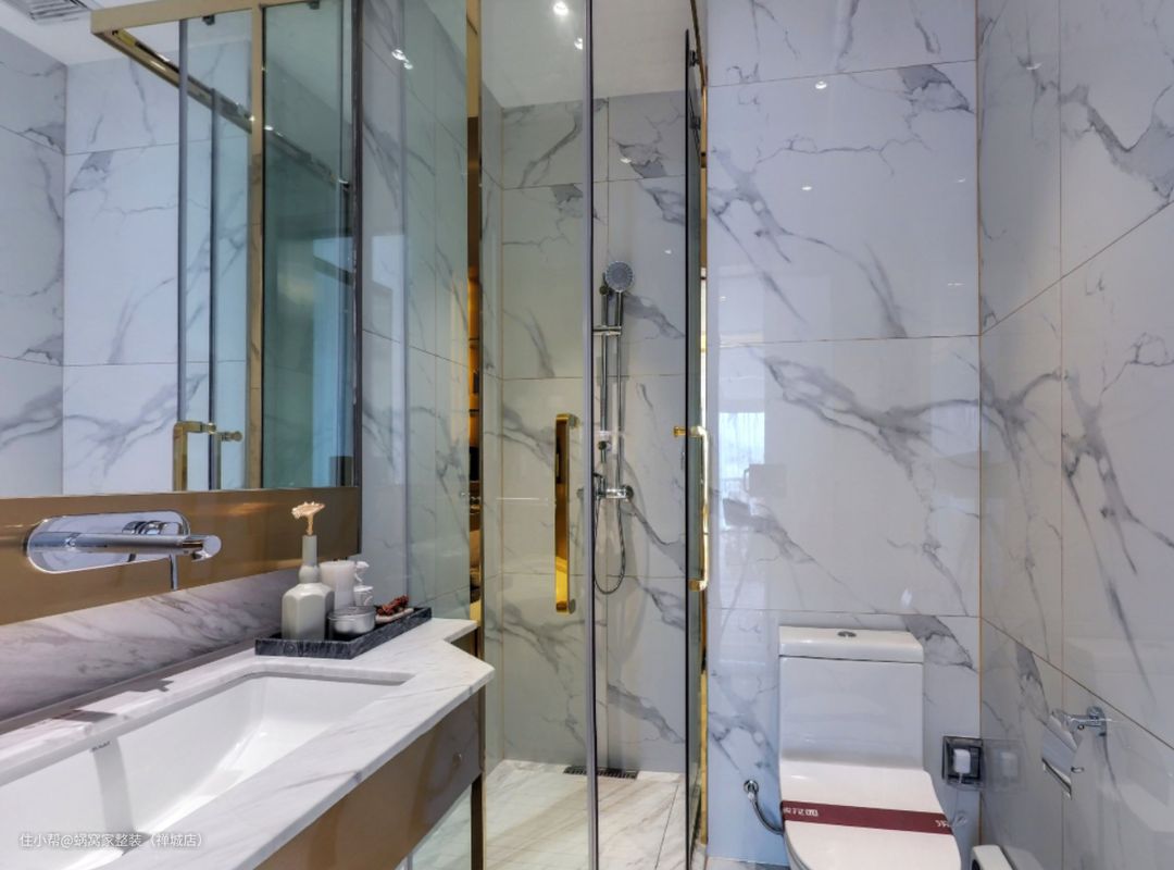 干湿分离的卫生间,给业主提供更舒适的的卫生间使用环境,还单独保留了淋浴区,给业主提供了一个舒适的淋浴空间。 大收纳空间的镜柜,让业主随心收纳洗漱用品,帮我们告别杂乱无章,愉快我们的身心情绪。