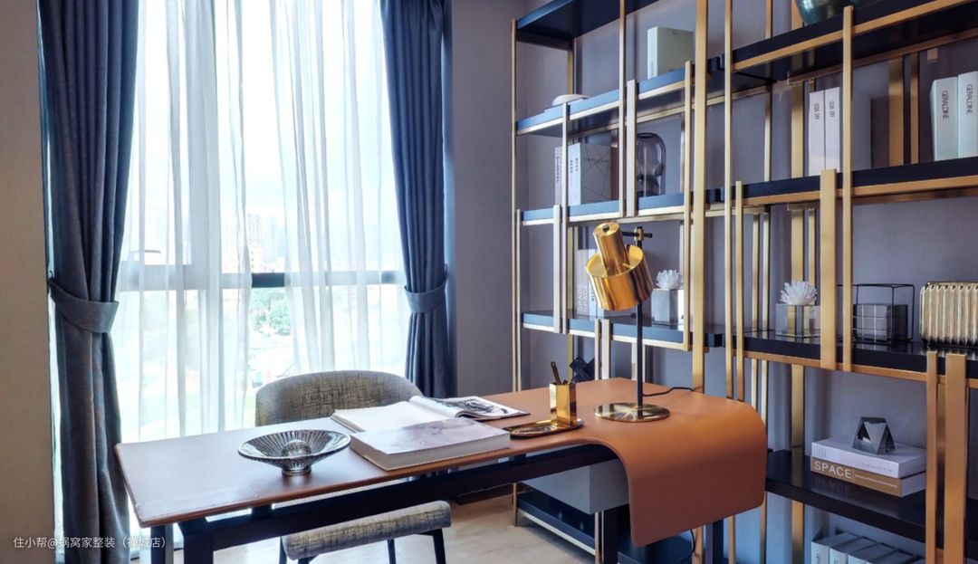 书房处处呈现出质朴简约之美,哑白的墙壁,加上金属质感的展示架,赋予人无尽的诗意和素雅。 独具匠心的家具摆件,不需要刻意装饰,也能凸显空间质感。