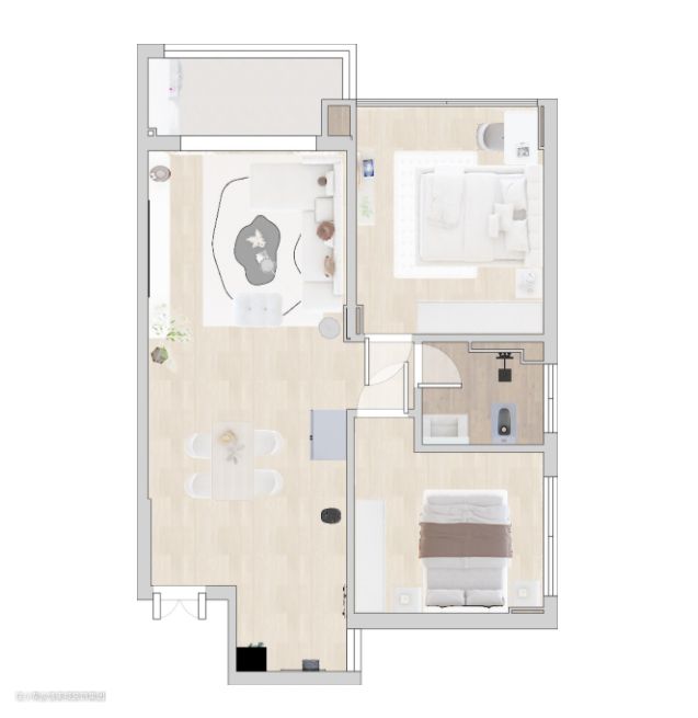 畔山美地嘉园70㎡奶油风二居室